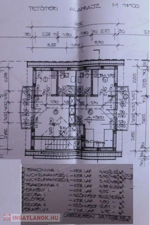 tetőtér (nettó: 59,15 nm, bruttó: 68,19 nm): 2 apartman (szoba, konyha - étkező, fürdőszoba zuhanyzóval és WC – vel, erkély)