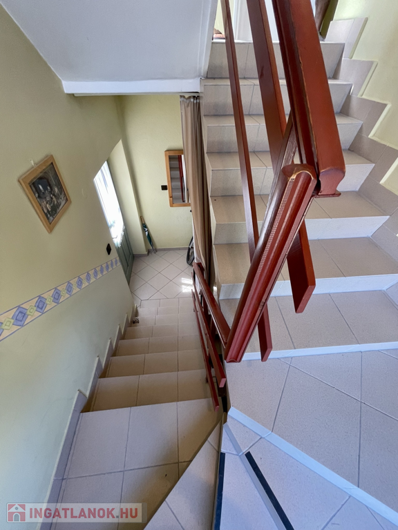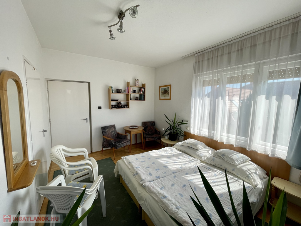 Hévízen a tófürdőtől pár perc sétára, a központhoz közel, mégis csendes utcában kínálunk eladásra egy 1975-ben épült négy szintes téglaépítésű és cseréptetővel fedett 280m2-es családi házat 437m2-es telken! 2005-ben a tető le lett cserélve és több átalakítás is történt. A legalsó szuterén részen található a tulajdonosok lakrésze két szobával, konyhával, fürdőszobával, WC-vel és kazánházzal. A felső két szinten összesen négy apartman van kialakítva szobákkal, konyhákkal, fürdőszobákkal vendégek fogadására. A padlástér nincs befejezve, de itt is kialakítható egy vagy két apartman. A szobák szalag parkettával és laminált padlóval burkoltak vegyesen, a fürdők, konyhák és közlekedők járólapokkal fedettek. A nyílás zárók fa és műanyagok vegyesen. A fűtésről gáz cirkó és cserépkályha is gondoskodik, a melegvizet villanybojlerek állítják elő. Az épület keleti feléhez lett építve egy 26m2-es tároló műhely ahol ipari áram is elérhető. Korszerűsítés után kiválóan alkalmas vendégek fogadására vagy akár több nemzedék együtt élésére! Élelmiszerbolt, polgármesteri hivatal, templom, iskola és gyógyszertár négyszáz méterre, a tó hatszáz méterre, Keszthely 7 kilométerre, Bécs és Budapest egyaránt kétszáz kilométerre elérhető!