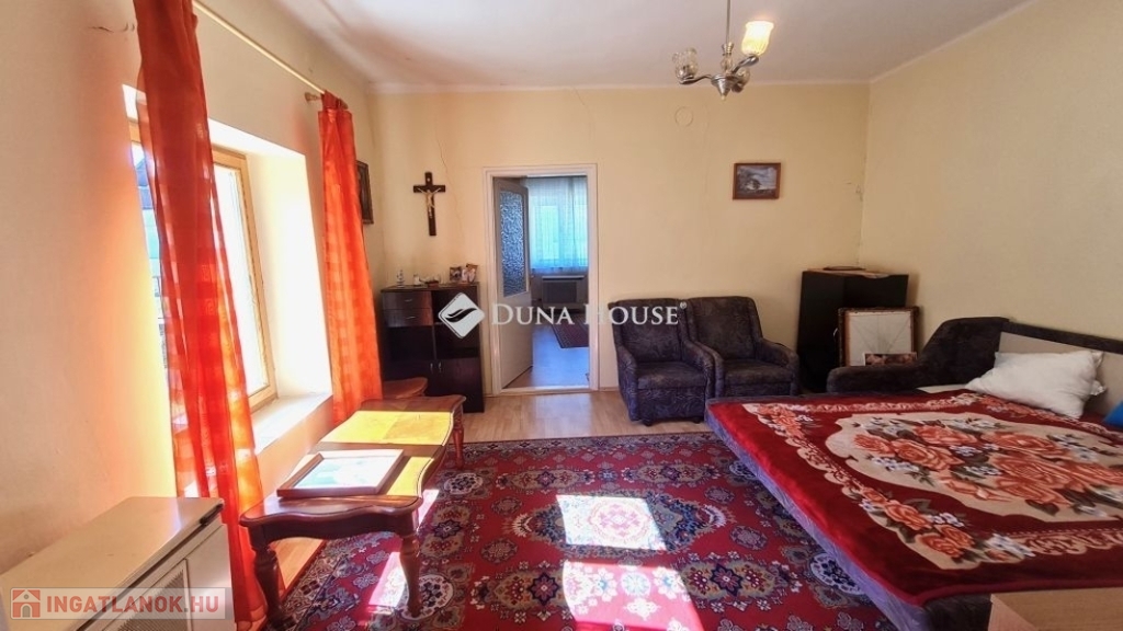 Eladó egy bájos, vert falazatú családi ház Himesházán, a baranyai dombok ölelésében!A 100 nm-es, három szobás ingatlan egy tágas, 1161 nm-es telken helyezkedik el, amely kiváló lehetőséget nyújt a kertészkedésre vagy akár új épületek létrehozására. A ház belső elrendezése: tágas étkező, napfényes, egymásból nyíló délnyugati tájolású szobák, 12nm-es konyha, előszoba, valamint fürdőszoba és WC mely egy helyiségben található. A házzal egybeépült közel 18 nm-es pajta további lehetőséget rejt magában. Az ingatlan cseréptető héjalású, a fűtésről minden helyiségben gázkonvektor gondoskodik, ráadásként az étkezőben egy íves kandalló biztosítja a téli hideg estéken a megfelelő főérzetet.A telken további, tégla építésű melléképületek találhatók, melyek felújításra szorulnak, de remek lehetőséget kínálnak tárolásra vagy műhely kialakítására. Az udvarban egy ásott kút, valamint egy 15 nm-es termények tárolására alkalmas földpince is helyet kapott.Himesháza egy barátságos, 1200 lelket számláló, többnemzetiségű település, ahol minden szükséges szolgáltatás elérhető: óvoda, iskola, orvosi rendelő, gyógyszertár, boltok és egyéb szolgáltatások. A falu tökéletes választás azok számára, akik nyugodt, vidéki környezetben, mégis közel a szükséges intézményekhez szeretnének élni.Ne hagyja ki ezt a kivételes lehetőséget – egyedi, vidéki otthonra lelhet Himesháza festői völgyében!Hívjon most és tekintse meg személyesen!Irodánk teljes körű szolgáltatást nyújt ügyfeleinknek, többek között hitelügyintézéssel és energetikai tanúsítvány elkészítésével. Vevőink számára minden szolgáltatásunk INGYENES!