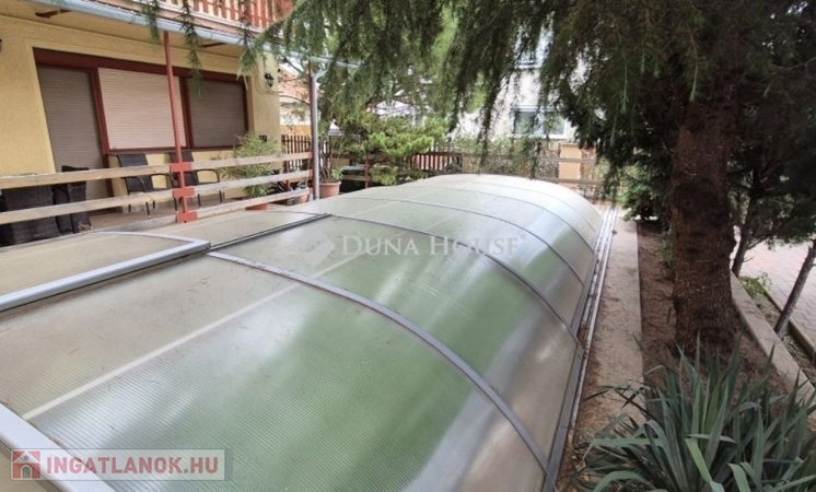 Hódmezővásárhely Kertvárosában, csendes utcában, igényes, emeletes családi ház parkosított kerttel és fűthető medencével eladó!Ez a dupla komfortos, 185 m²-es téglaépítésű otthon nagycsaládoknak vagy több generáció összeköltözésére is ideális választás.Az ingatlan 2018-ban teljes felújításon esett át, melynek során magas minőségű anyagok kerültek beépítésre.Elhelyezkedése kiváló: Szegedre közlekedő tram-train megállója. A Family Center autóval nagyon rövid idő alatt elérhető.Főbb jellemzők:Telek: 456 m²Lakótér: 185 m²Építés éve: 1980, felújítás: 2018Fa nyílászárók hőszigetelt üveggel, redőnnyelFűtés: gázkonvektor + 2 klímaRiasztórendszerFöldszint: 2 különnyíló szoba, nappali, étkező, konyha, kamra, fürdőszoba, külön WC, fedett teraszEmelet: 3 különnyíló szoba, nappali, kádas fürdőszoba, külön WC, télikert, teraszMelléképületek: garázs, tároló, nyári konyha, WCAz udvar térkövezett, gondozott és szép zöld övezetben lehet pihenni.Igazi kikapcsolódást kínál a fedett, fűthető, extrákkal felszerelt medence.Keressen bizalommal, és legyen Ön ennek a csodás családi háznak az új tulajdonosa