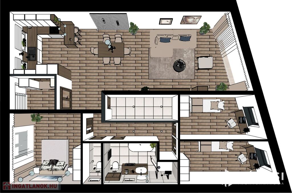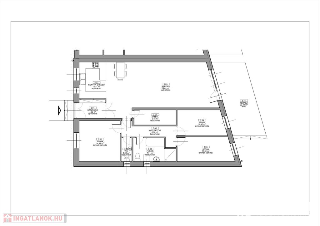 - Szobák: 14,44 m2, 11,61 m2, 10,40 m2