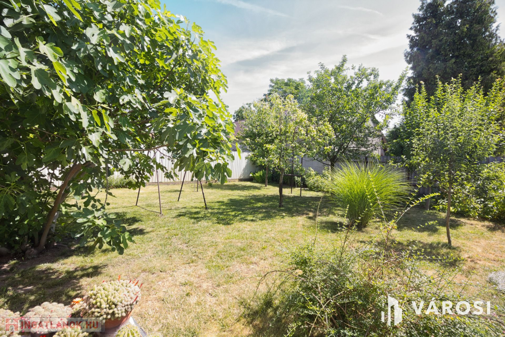 A ház mögötti udvaron termő bio cseresznye, körte, és füge biztosít gyümölcsöt a család számára. A locsolást 80 méter mélyre fúrt kút segíti. Az épület előtti kert gyönyörű virágaival pihentetően hívogató.