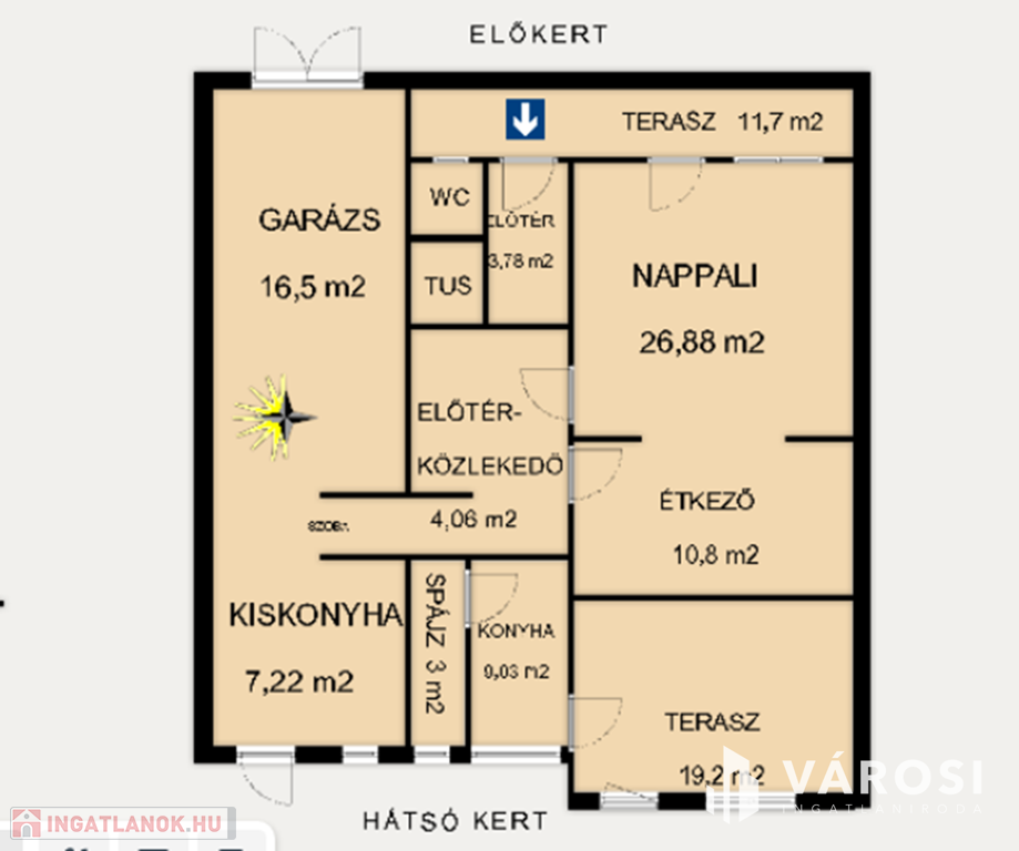 A ház alsó szintjében található a 25 m2-es garázs és 20 m2-es kiskonyha.