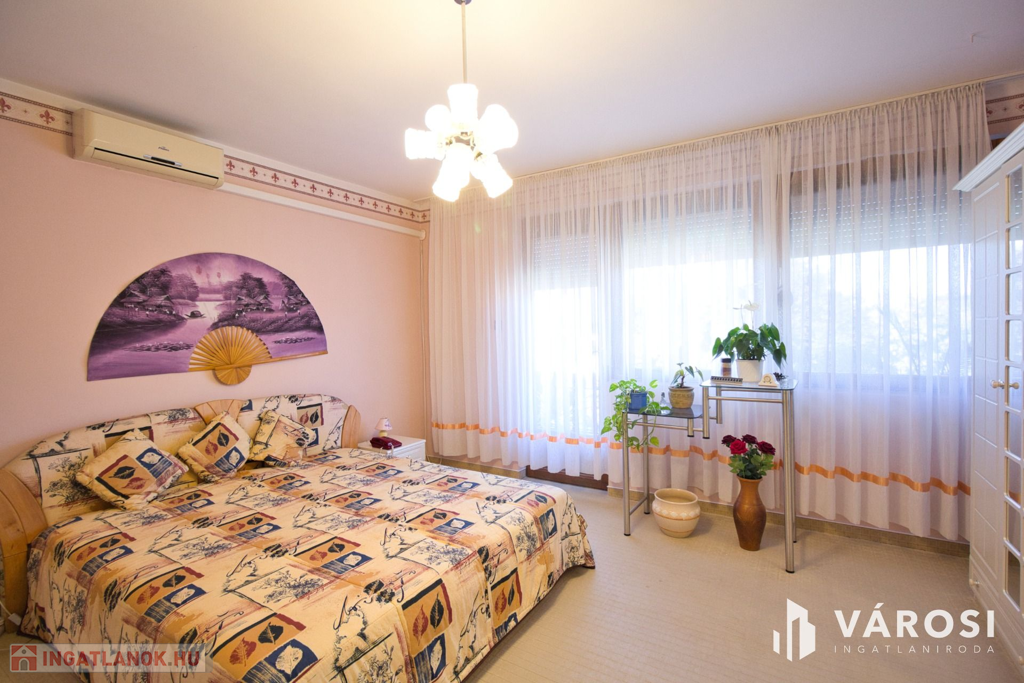 Vásárhely a belvárosban, és mégis csendes utcában kínálom eladásra ezt a 180 m2-es kétszintes 4 szobás családi házat 594 m2-es telken. Az ingatlanban mindenhol padlófűtés biztosítja a meleget és 3 klíma szolgáltatja a komfortérzetet a meleg napokon. A ház a nagy területhez képest alacsony rezsivel működik, mert a fa ablakok hungaropan hőszigetelésűek, így jól záródnak. Az ablakokra reluxákat és redőnyöket szereltek fel. A kazáncsere is megtörtént Ariston kondenzációs kazánra. A földszinten hidegburkolatot raktak le, az emeleten padlószőnyeget. A fürdők és WC hidegburkolatot kaptak. Minden szoba erkélyes. A szobák fala festett.