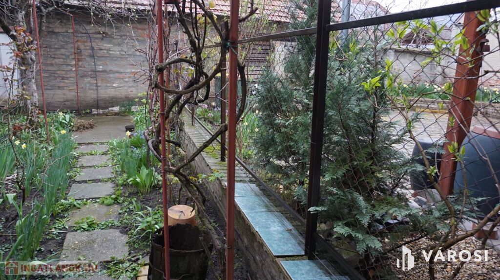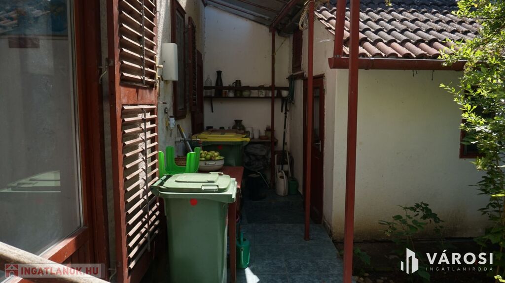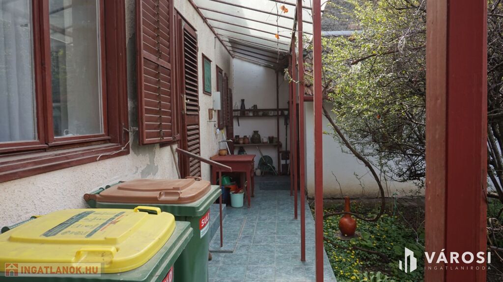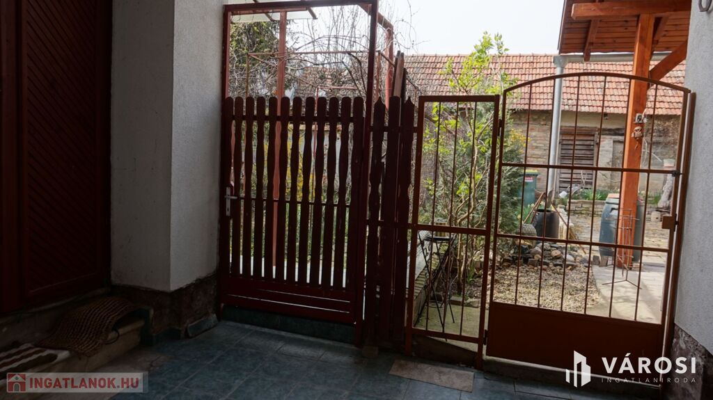 Hódmezővásárhely belváros közeli csendes utcájában eladó polgári ház egyik fele /osztatlan közös tulajdon használati megállapodással/. A lakás 74 m2, egy 15 m2-es terasz és 100 m2-es kertrész tartozik hozzá, melyen 2 melléképület található. A ház tégla építésű és jellemzően egy tágas közös használatú szárazkapu bejárón jutunk az épületbe.