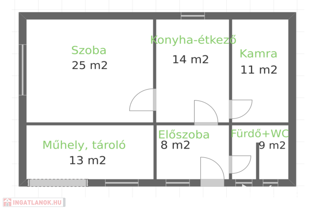 -67 m2 hasznos alapterület + 13 m2 műhely, tároló