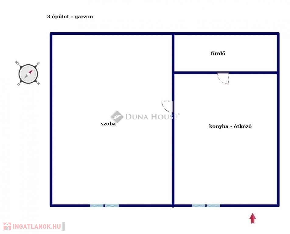 szoba, konyha–étkező, fürdő