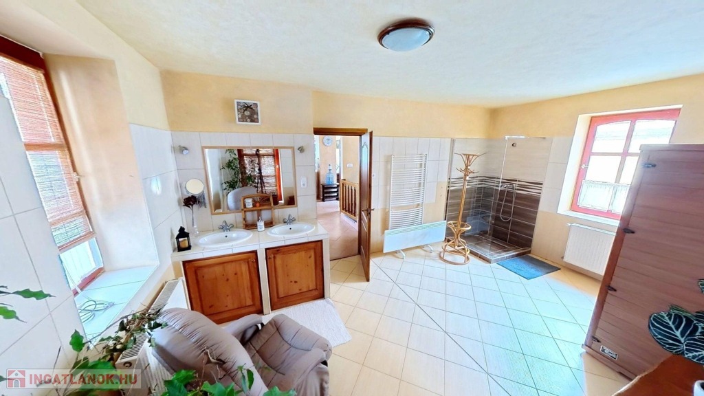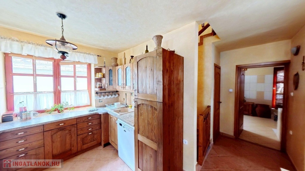 A második - kisebb ház - egy régi, sziklatalapzaton álló, vegyesfalazatú ház, mely 8 éve teljeskörűen, gyakorlatilag a falazatig lett felújítva. Ekkor új tetőt, villamos- és vízhálózatot, új, fa nyílászárókat kapott a ház, így a mai igényeknek tökéletesen megfelel. Fűtéséről két gyönyörű cserépkályha és / vagy klíma gondoskodik.