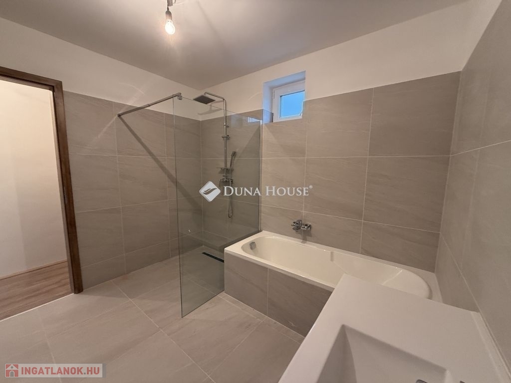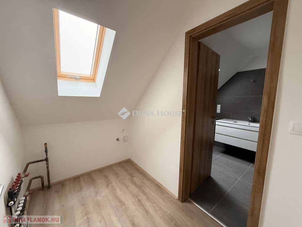 A levegő hőszivattyús rendszer és a padlófűtés gondoskodik az alacsony rezsiről és a korszerű, fenntartható működésről. A nappaliból egy kb. 20 m²-es, térkövezett terasz nyílik, amely a saját, 600 m²-es kertre néz. A telekhez további 250 m² fásított terület is tartozik – tökéletes hely pihenésre, kertészkedésre vagy gyerekeknek.