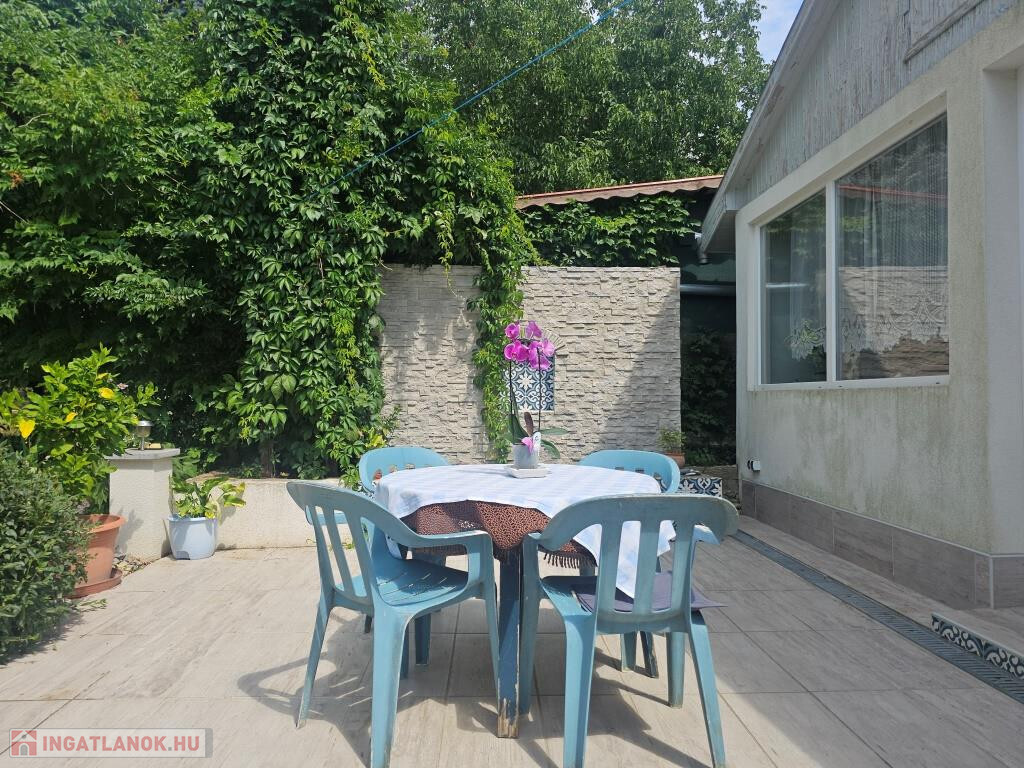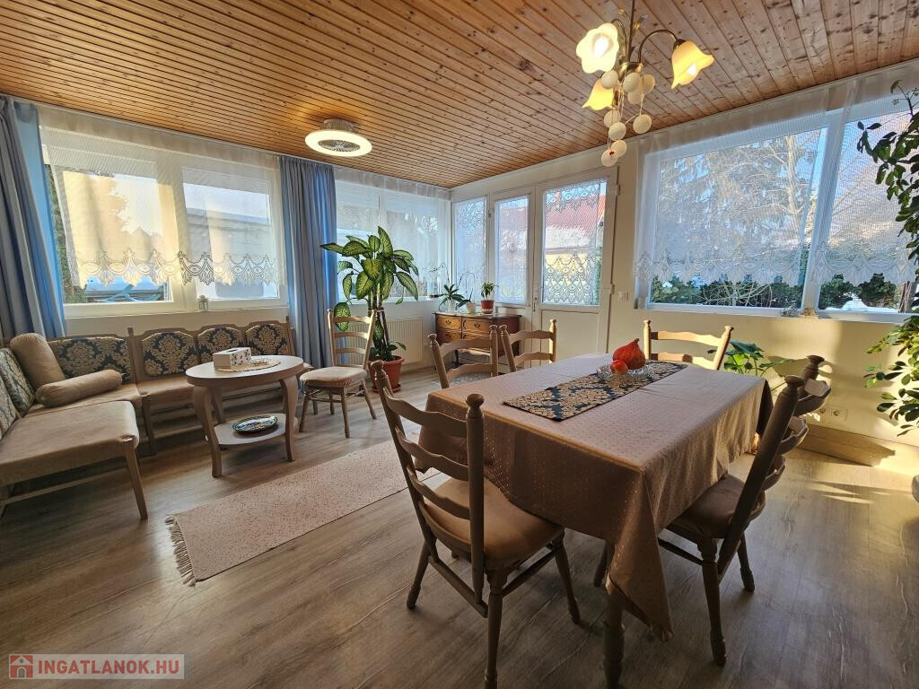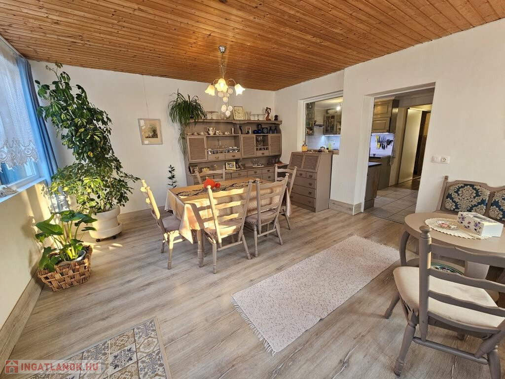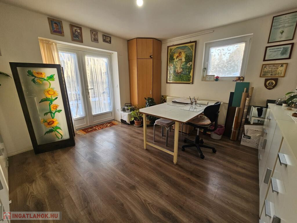 Igalban a gyógyfürdőtől 5 perc sétára kínálunk megvételre két, egymással kertkapcsolatban lévő házat. Az egyik egy szépen felújított háromszintes lakóépület, ahol mindhárom szinten ki van alakítva egy-egy önállóan megközelíthető lakrész saját konyhával és fürdővel, így külön is használhatók, kiadhatók. A földszint helyiségei: nappali étkezővel, terasszal, közlekedő, ahonnan minden nyílik, konyha, kamra, fürdő, külön WC, mosókonyha, tároló, egy hálószoba, és egy tágas előtér, ami jelenleg alkotó műhely is egyben. Alapterülete 77 m2. Az első emelet helyiségei: étkezős nappali konyhafülkével, erkéllyel, fürdő WC-vel és két háló. Ez a szint 43 m2 plusz a 11 m2-es erkély. A legfelső szint az előzőhöz hasonló elosztású, csupán kicsit kisebb, 40 m2-es, amihez 8 m2-es erkély tartozik. A teljes lakóterület tehát 160 m2. Ez az épület állandóan lakható, használható, fűtése cirkós, külső nyílászárói hőszigeteltek, műanyag keretesek. A hozzá tartozó telek 285 m2. A másik épület a kerten keresztül, de önállóan is megközelíthető, kétszintes, jó állapotú, hétvégi ház megjelölésű, egyben használható. A földszintre kellemes, tágas fedett, növényzettel körül vett teraszról lépünk be az étkezős nappaliba. Van még itt két hálószoba, konyha, fürdő, külön WC és egy kis közlekedő. Az emeletre a nappaliból vezet a lépcső, fent szintén ki van alakítva egy nappali, két háló, és itt is van fürdő, külön WC. A teljes alapterület 81 m2, plusz a terasz kb. 15 m2. Itt központi fűtés helyett a földszinten van egy kandalló, illetve elektromos radiátorok állnak rendelkezésre szükség esetén a hűvösebb időkben. Ez az épület ezért jelenleg inkább a melegebb szezonban használható, bár a külső nyílászárók itt is hőszigeteltek, műanyag keretesek. Megoldható az állandó kihasználhatóság, lakhatóság is. A telek 329 m2-es. Mindkét telek (összesen: 614 m2) szépen karbantartott, parkosított. Csendes, nyugodt utcában fekvő, bejáratott vendégkörrel rendelkező 4 szálláshely (lakótér összesen: 241 m2, teraszok, erkélyek: 50 m2) remek elhelyezkedéssel a Balaton és Kaposvár között, a neves gyógyvíz városában! A terület bővíthető, az előzőekkel összefüggésben álló 346 m2-es telek 25 %-os beépíthetőséggel vásárolható még hozzá, ára 6 MFt.