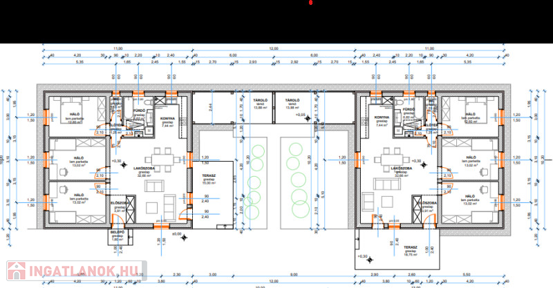 Inárcson, nyugodt környezetben eladásra kínálom egy két lakásos ikerház hátsó lakását. Az ingatlan 94 m2-es, 3 szoba + amerikai konyhás nappali, fürdőszoba toalettel, külön wc. Fűtése hőszivattyúval történik, padlófűtéssel. Az épület 10 cm külső fali, 20 cm padlás szigetelést kapott. Csak tárolókkal kapcsolódnak a lakások. A telek 500 m2-es. Teljesen elkészültek, csak az igény szerint kiválasztott burkolás van hátra. Az épületek év végi átadással foglalhatóak. Megtekinthető: Antal Krisztina 06204004014