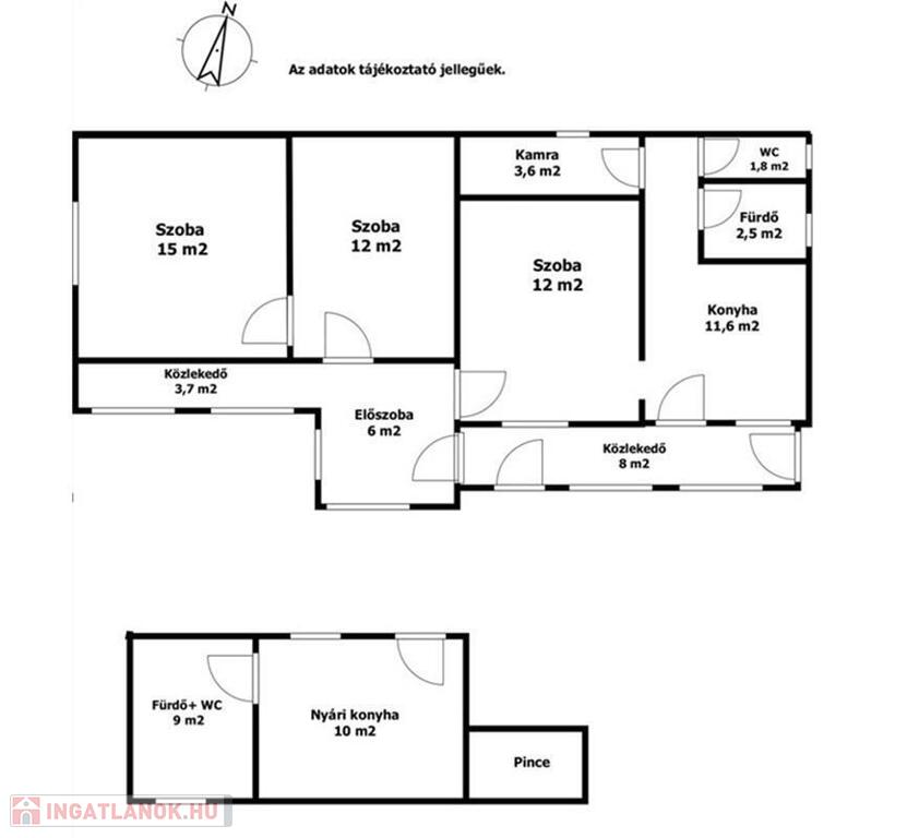 Az ingatlan átgondolt elosztású, három szobával, konyhával, kamrával, külön WC-vel és fürdővel rendelkezik. Fűtése kályhával és cserépkályhával megoldott, így fenntartási költsége rendkívül kedvező.