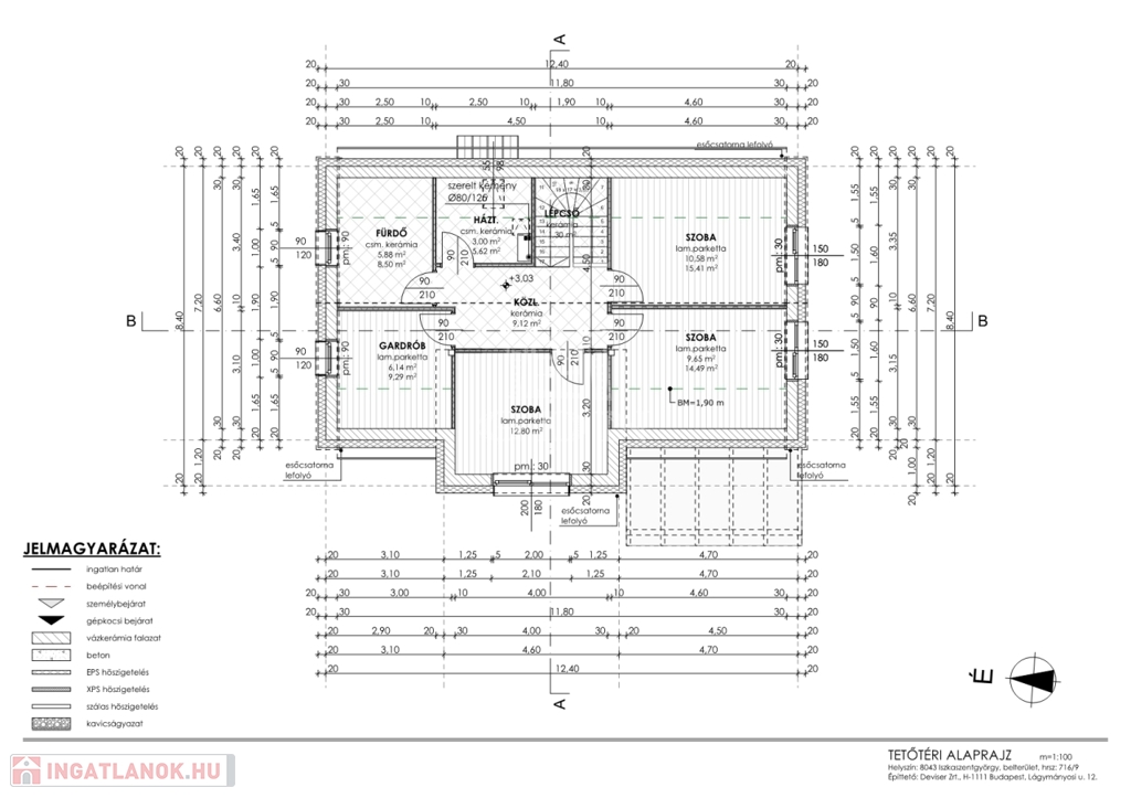 - Emelet: közlekedő, 3 tágas szoba, 1 fürdőszoba, gardrób, háztartási helyiség,