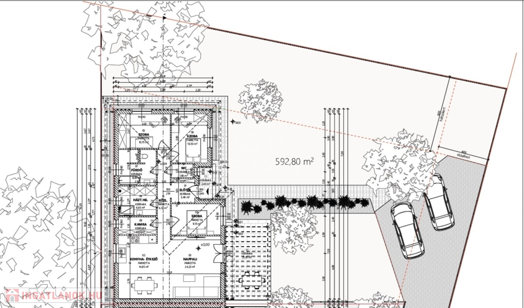 ● 593 m2 önálló telekterület