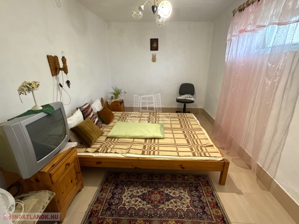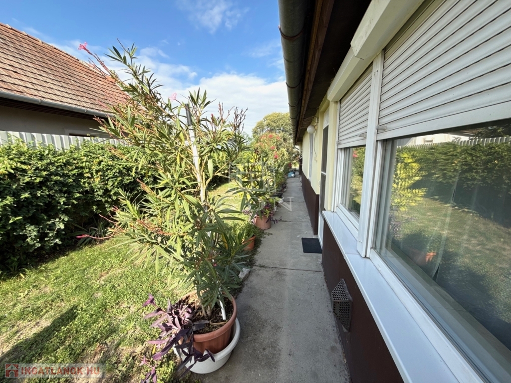 Izsákon, csendes kisutcában, 740 nm telken, 80 nm, 2+1 szobás családi ház eladó. Stabil, száraz vegyesfalazatú, néhány éve felújítás keretében cserélve lettek a nyílászárók, burkolatok és a villanyvezetékek is, most pedig klíma került beszerelésre. Melléképület kis átalakítással megfelel garázs kialakítására, tárolásra. Kertje konyhakerti zöldségek termesztésére alkalmas.