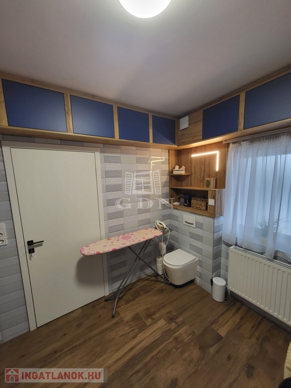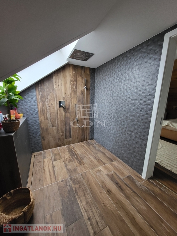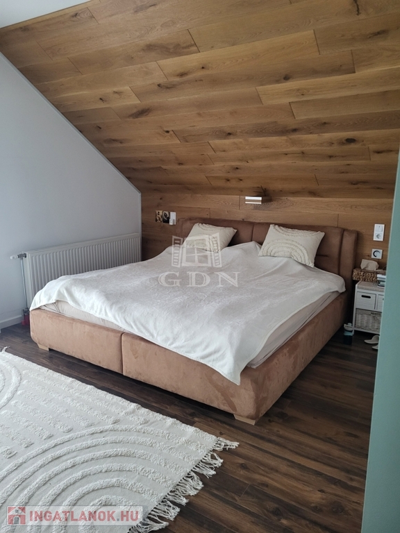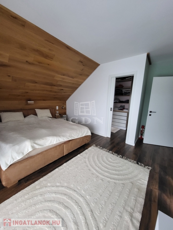 Ják átmenő forgalomtól mentes csendes utcájában eladó, páratlan adottságokkal rendelkező luxusingatlan. A lakóház mindkettő szintje átgondolt,praktikus, kényelmes kialakítású. Magas műszaki, technikai felszereltséggel átalakított ingatlan 2022-ben nyerte el kifogástalan esztétikai formáját. Tulajdonosai különös figyelmet fordítottak a harmonikus megjelenésre, a helyiségek egyenletes, kellemes fényviszonyainak biztosítására. Ennek érdekében hangulatos fali világítócsatornák, ledszalagok, álmennyezeti világítások, bútorok mögé épített világító felületek kaptak helyet. Négy rétegű üvegezéssel ellátott hatalmas tolóajtós felület biztosítja a természetes fényviszonyokat az ingatlan terasza felöl. Az erkélyajtó elektromos aluredőnnyel felszerelt. Közel 40 m2 -es terasz köti össze a házat az 1400 m2-es , szépen karbantartott kerttel. Elektromos hálózata 2x16 A, 1x40 Amper. A tetőn 23 db napelem található, 9.4 kw teljesítménnyel, invertellel. A dupla garázsban elektromos autó töltési lehetrőséggel. Az ingatlan fűtése Bosch kondenzációs kazánon kívül, modern cserépkályhával, központi hűtő -fűtő klímával történik, 5 db Daikini klíma került beépítésre. A ház négy hálószobával, három fürdővel rendelkezik. Amerikai konyhás nappalija 47 m2. Érdekessége a hangulatos ablakfülkéje izgalmas