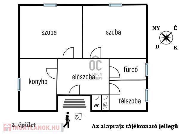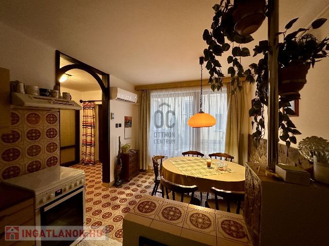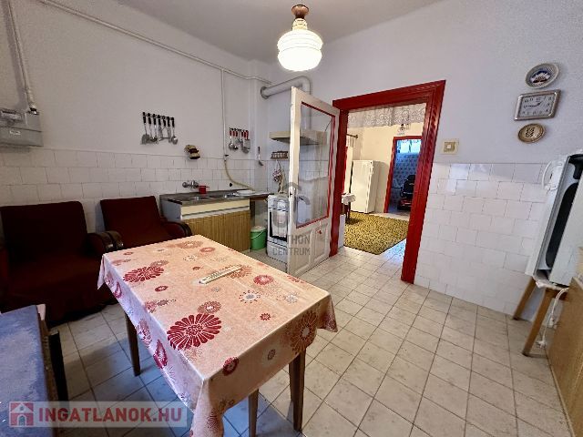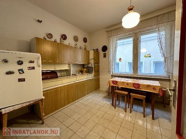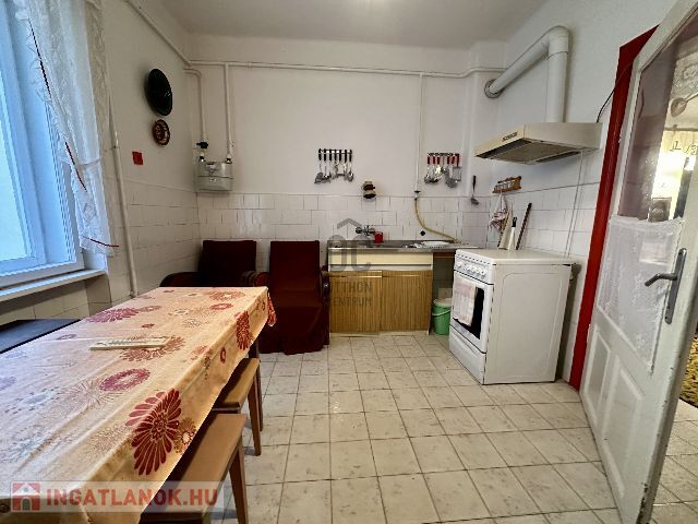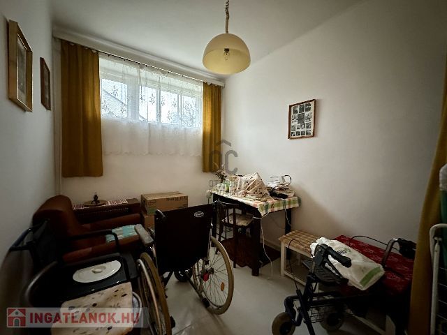 2. lakóegység: 1965-ös építésű, "Kádár-kocka" (70 nm). Helyiségei: előszoba, konyha, két szoba, félszoba, WC, fürdő és egy kis tároló. Fűtése gázkonvektorokon keresztül történik. A lakóegység igény szerinti felújítást igényel, szerkezetileg teljesen rendben van, korának megfelelő állapotú. Két utcafronti ablaka műanyag, a többi fa.