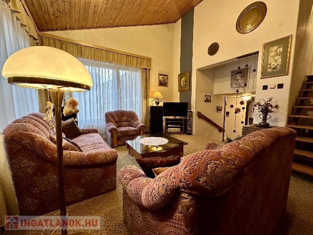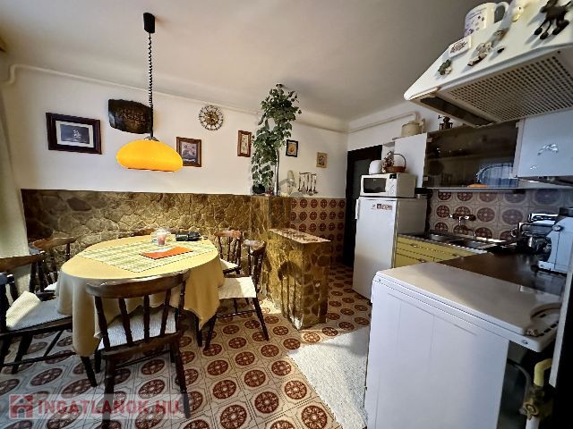 1. lakóegység: 1980-as építésű kétszintes épület (81 nm). A földszinten szélfogó, előtér, étkező-konyha, nappali, kamra, fürdőszoba, WC található, az emeleten pedig egy folyosóról nyíló két szoba. Az ingatlan nagyon jó megoldásokkal rendelkezik: tágas terek jellemzik, sok ablak teszi világossá a fő élettereket, fűtése pedig gázzal történő légfűtés, radiátorok nem találhatók az ingatlanban. Két hűtő-fűtő klíma (az étkezőben és a nappaliban) is gondoskodik a kellemes hőérzetről. Nagy, kényelmes erkély kapcsolódik az emelethez, az épülethez pedig egy 4X5 m-es garázs is tartozik.