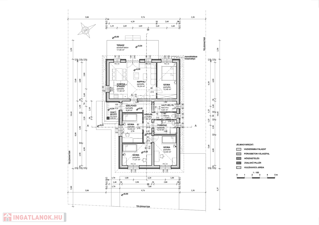 Az ingatlan 30-as Nútféderes tégla falazóelemből épül, fa födémmel.