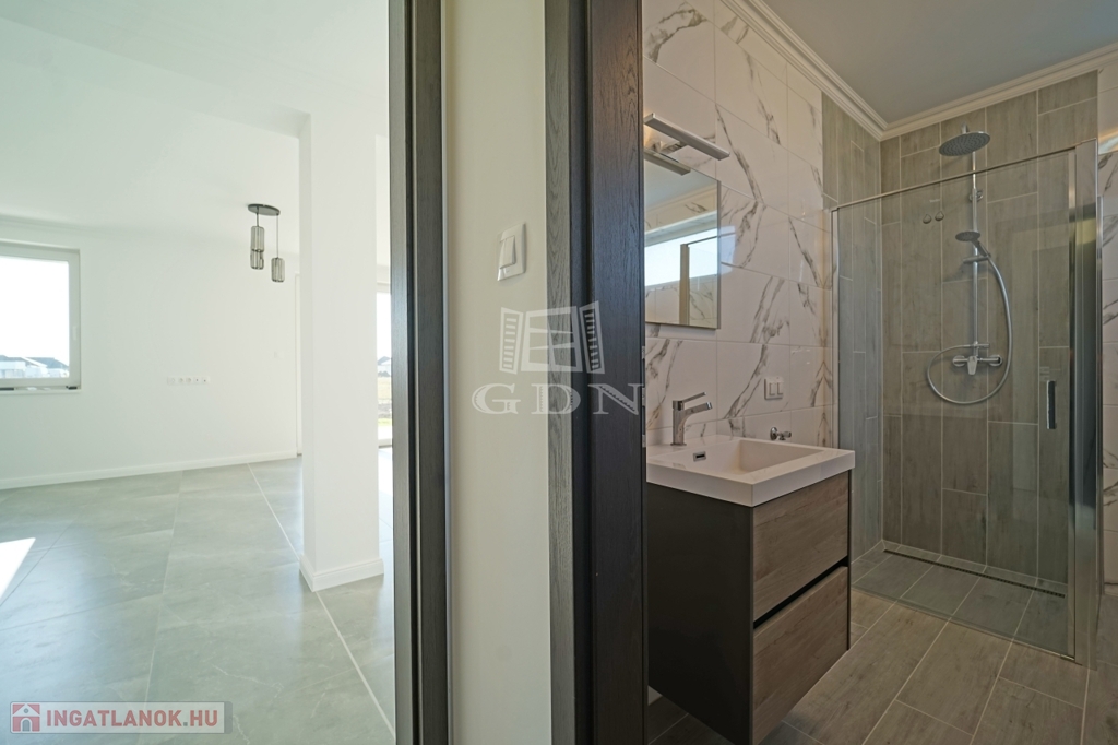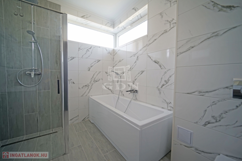Az ingatlan tetejét Terran betoncseréppel fedték, a 7 légkamrás Aluplast nyílászárók korszerű 3 rétegű üveggel szerelt műanyag thermo kivitelűek, gránit párkányokkal,aluminium elektromos távirányítható okos redőnnyökkel és szúnyoghálóval. A belső nyílászárók CPL dekorfóliás prémium minőségűek.