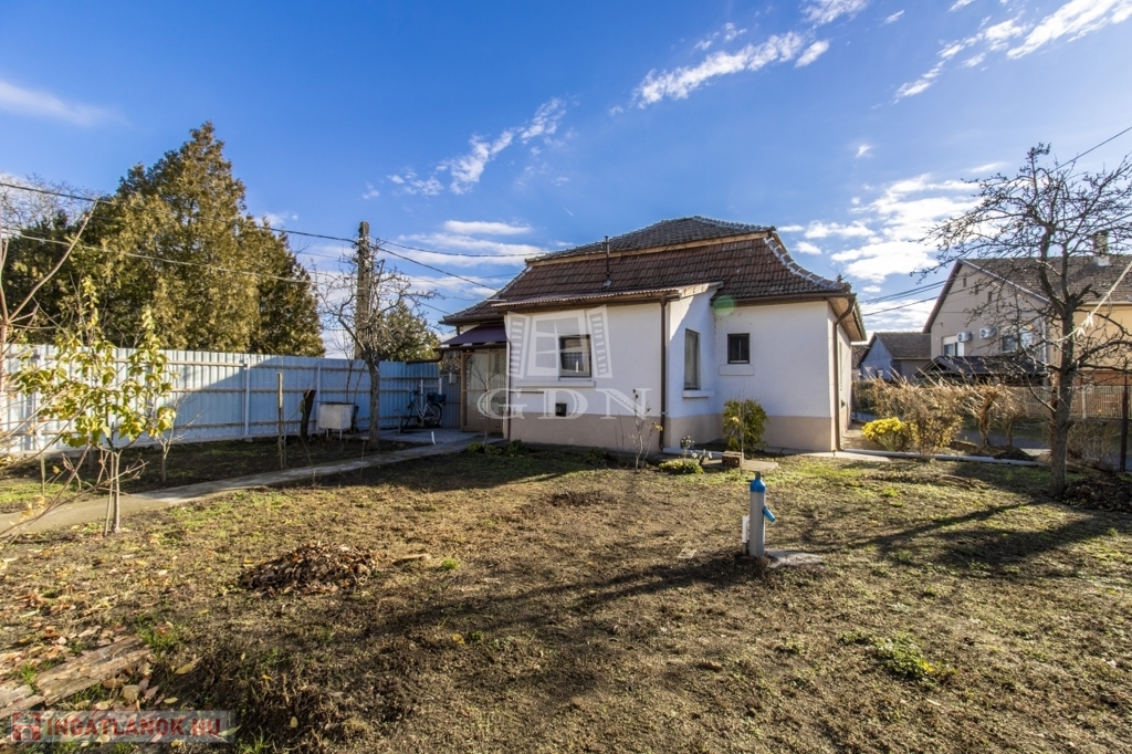 A ház saját garázzsal rendelkezik, mely az udvaron egy kisebb, önálló épületben kapott helyett.