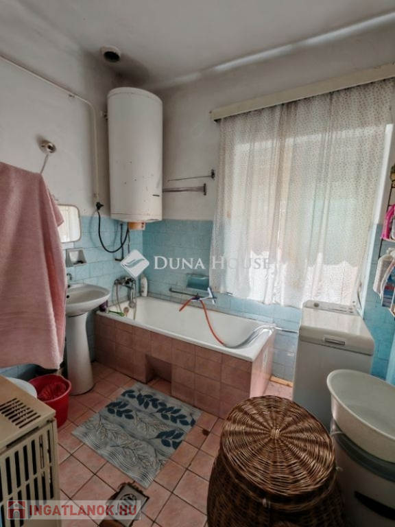 Eladó Pest-Vármegyében Jászkarajenő központjában egy felújítandó kétgenerációs, összközműves családi ház. A telek mérete 1438 nm , 105 a fő épület + 32 nm a kisebb épület , mely szintén lakhatásra alkalmas lehet. Vegyes falazatú , cserép fedéssel. Az ingatlan összközműves , külön mérőórákkal . Fűtése gázkonvektorral biztosított , a melegvizet villanybojler adja , illetve van két beépített cserépkályha tökéletes állapotban . Az egyik szobában elektromos fűtés is van. A burkolat a szobákban hajópadló , laminált parketta , a fürdőben járólap . Az ingatlant nagy tágas szobák jellemzik , kettő szobával , nappalival , konyha+ étkező , külön fürdő , wc , spejz. Külső kis épületben szintén kettő szoba , előtér található. Itt az ipari áram is bevezetésre került . A ház mellett tárolók vannak pincével. Az udvaron beépített medence felújítandó állapotban illetve egy garázs . A kert mérete alapján akár kisebb családi konyhakert kialakítására is alkalmas . Az ingatlan a település fő utcáján a központban található. Közelben van közért , gyógyszertár , templom , Művelődési Ház , posta stb.Ha felkeltette érdeklődését az ingatlan , várom hívását a hét bármely napján.