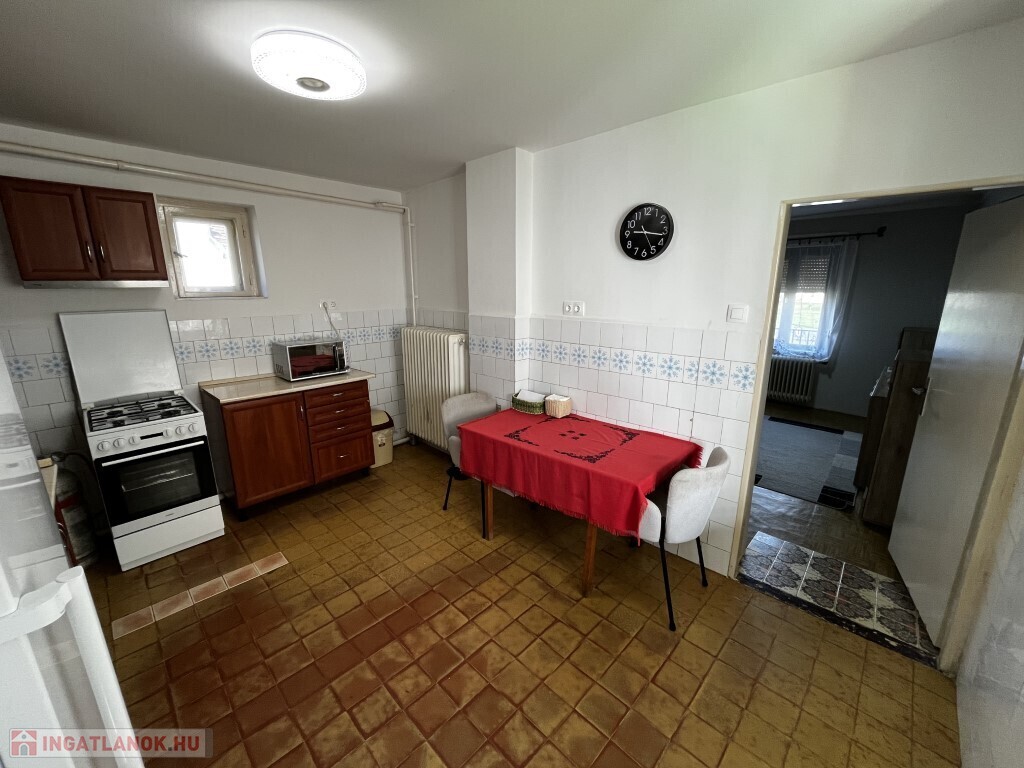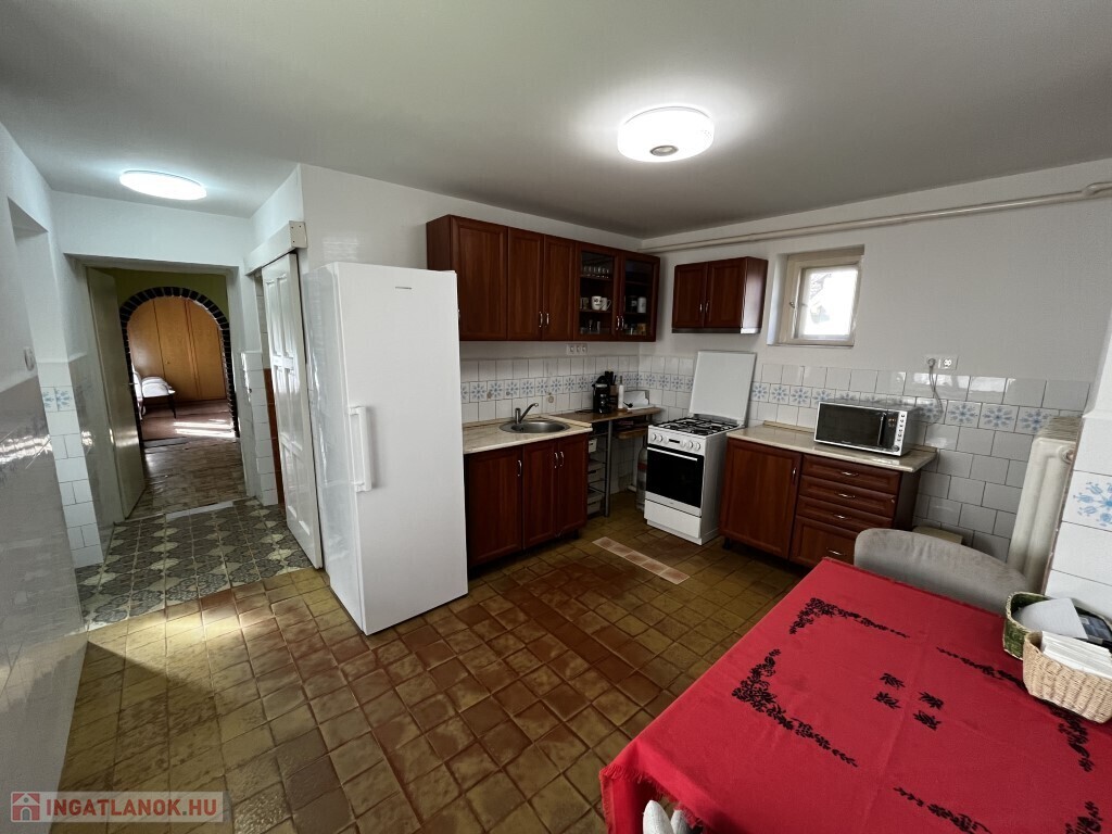 Kadarkúton, az Árpád utcában, 74 m2-es – rövid határidővel birtokba vehető - családi ház, mellépülettel és gazdasági épülettel együtt eladó. A lakóházban előtér, 2 szoba, nappali, konyha-étkező, fürdőszoba-wc helyiségek kerültek kialakításra, valamint tartozik hozzá külön bejárattal további kazánház-tároló is. A fűtése központi fűtés - vegyes tüzelésű kazánról megoldott, a meleg vizet villanybojler biztosítja. Az udvarban további gazdasági helyiségek, garázs, illetve melléképület található. Telek: 1.430 m2.