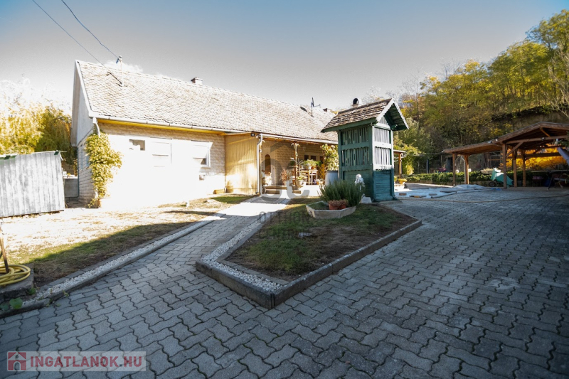 Az udvaron nagy tárolók, saját pince, és egy süllyesztett, épített, 160 cm mély medence is rendelkezésre áll.