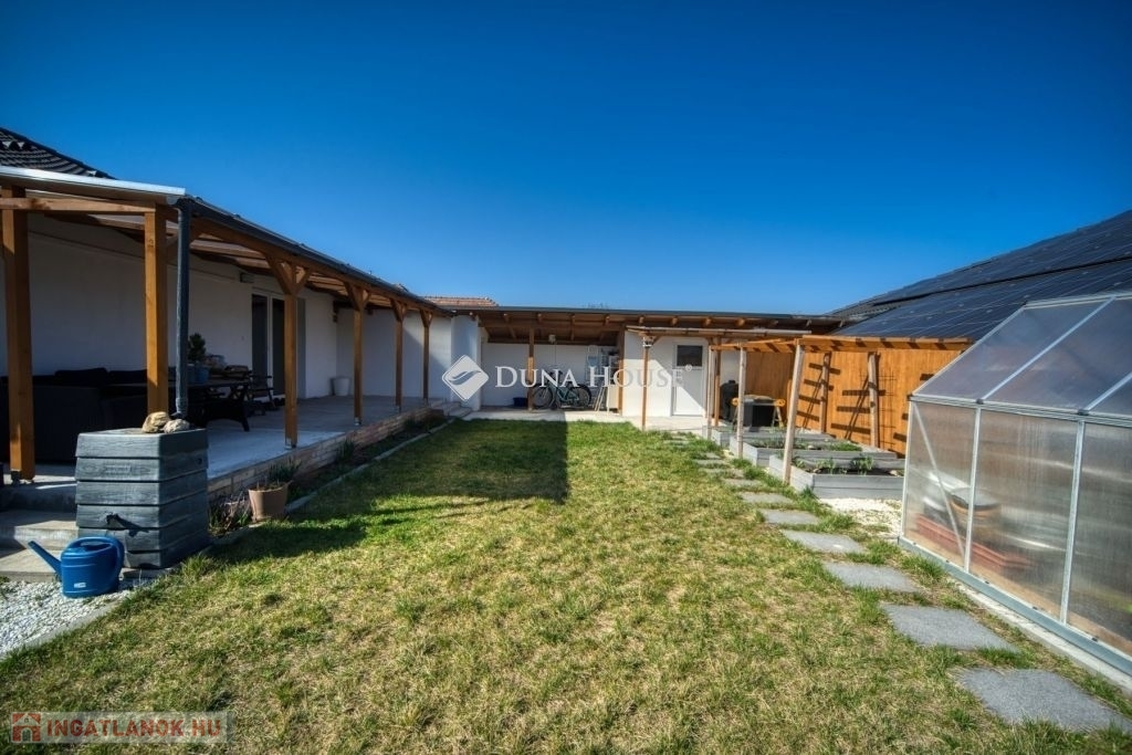 KERT:- 450 m2 alapterületű saját, körbekerített kertrész- 48 m²-es murvázott gépkocsibeálló több autó parkolására is- 2350 liter vízgyűjtő kapacitás (1000 literes tartály szivattyúval)- magaságyások, üvegház.