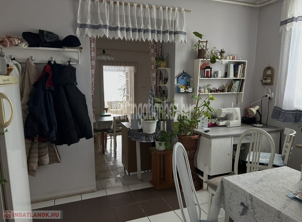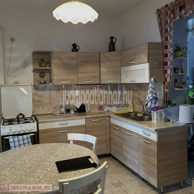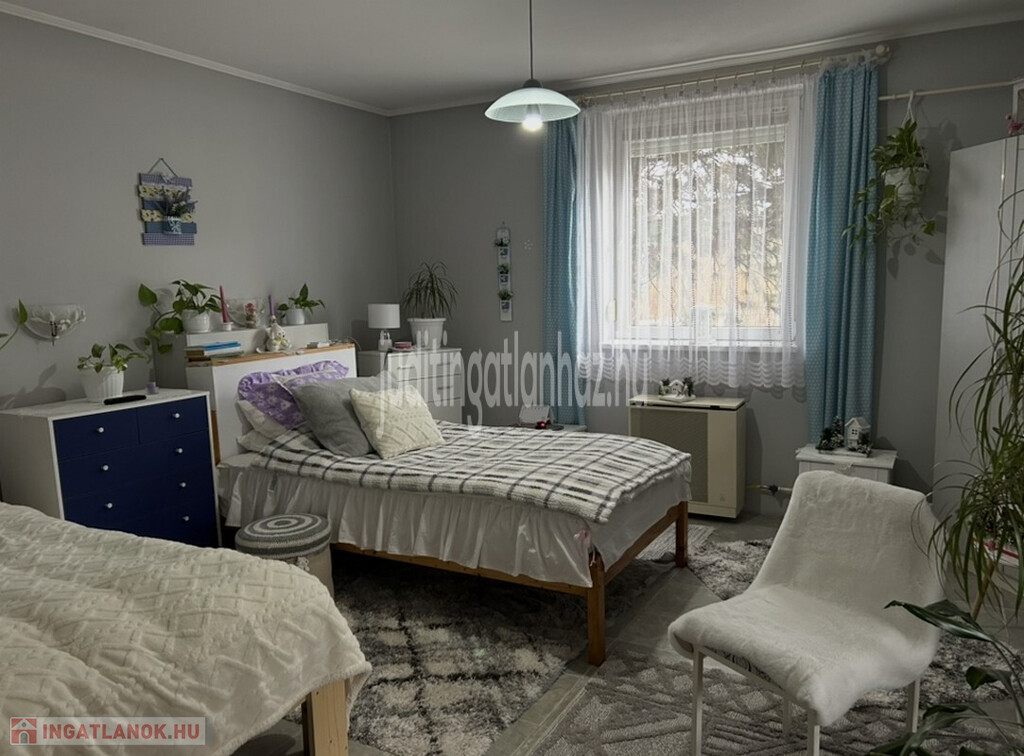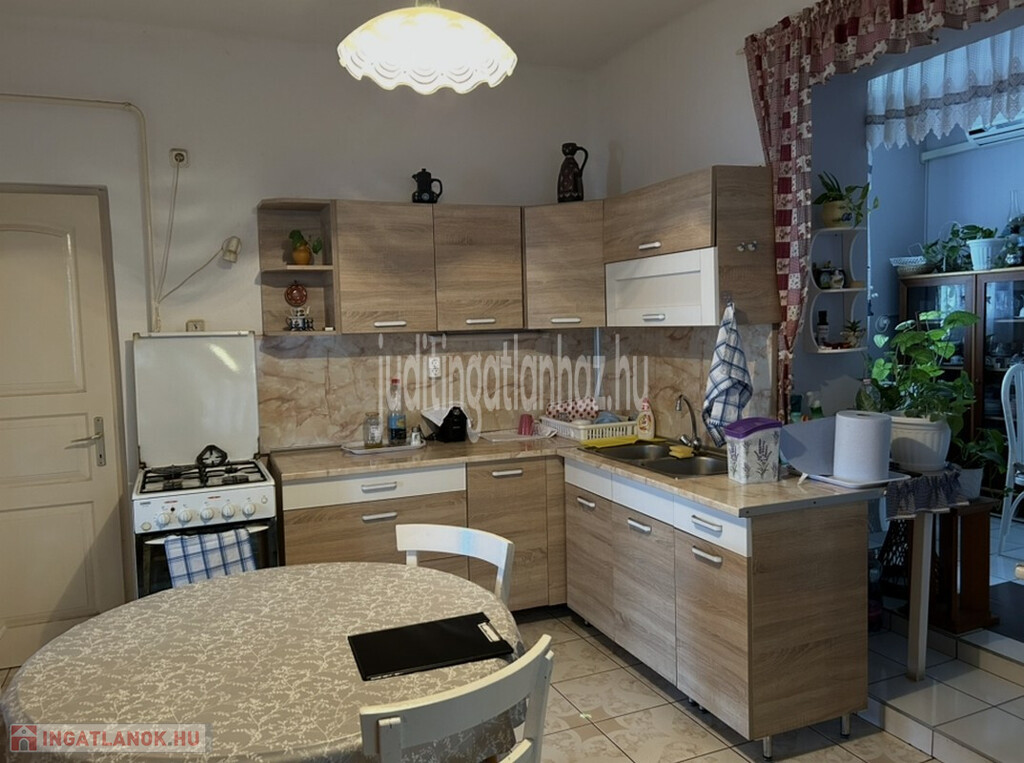 Nyíregyházától 15 km-re Kálmánházán eladó 107 m2-s fűtött alapterületű, három különnyíló szobás, nappali+étkező+konyha egy térben, fürdőszoba, kamra, zuhany+wc, külön wc, gázkonvektor+cserépkályha+kerámia kandalló fűtésű, klímával felszerelt, ipari árammal ellátott, hőszigetelt fa és műanyag nyílászárós mely redőnnyel árnyalt jó állapotú családi ház. Az ingatlan vályog (1960) és porotherm 30-s téglából ( 2005-be bővítve) épült a tető részben pala részben cserép, födémen 25 cm-s salakgyapot szigetelés. A ház 1797 m2-s telken fekszik tartozik hozzá szilárd falazatú mellék épület melyben garázs, kamra, tyúk ól és fa tároló található. A 2005-s bővítésnél a villany vezeték cserélve volt és zárt és nyitott terasz is helyet kapott. Elhelyezkedése aszfalt út mellet, teljes közművel a központ közelében. A térkép VÁZRAJZON minden épület feltüntetve. A tehermentes ingatlan értékét az autópálya felhajtó közelsége is emeli.