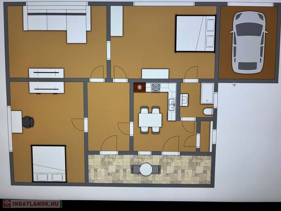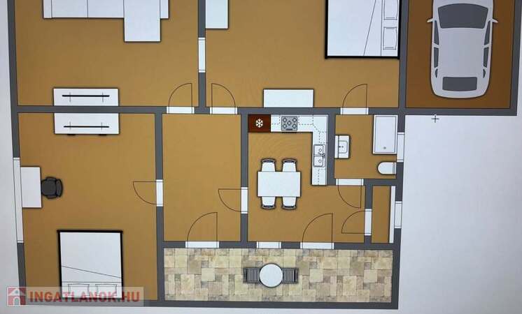 Az ingatlanban található 3 szoba, konyha-étkező, spájz, fürdő-WC, előszoba.