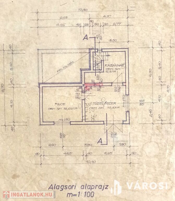 A pinceszinten tároló, műhely és kazánhelyiség a fűtési biztonság érdekében.