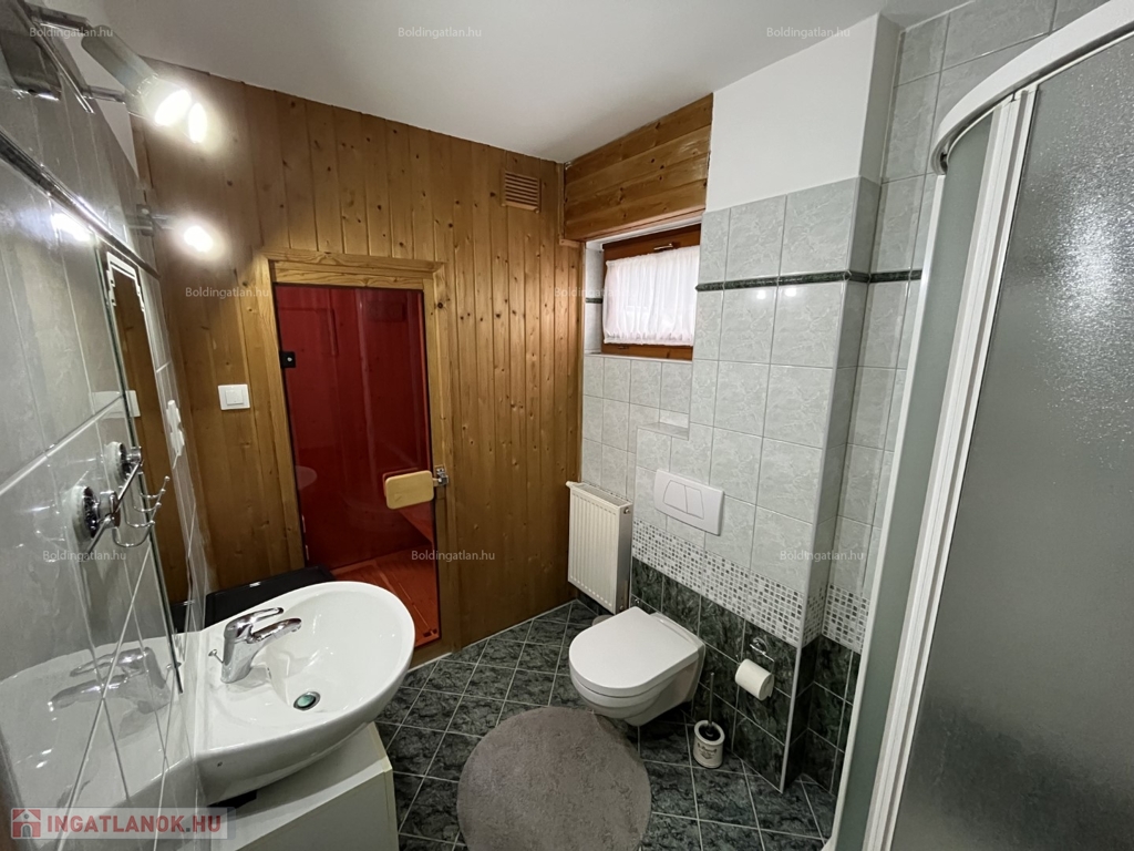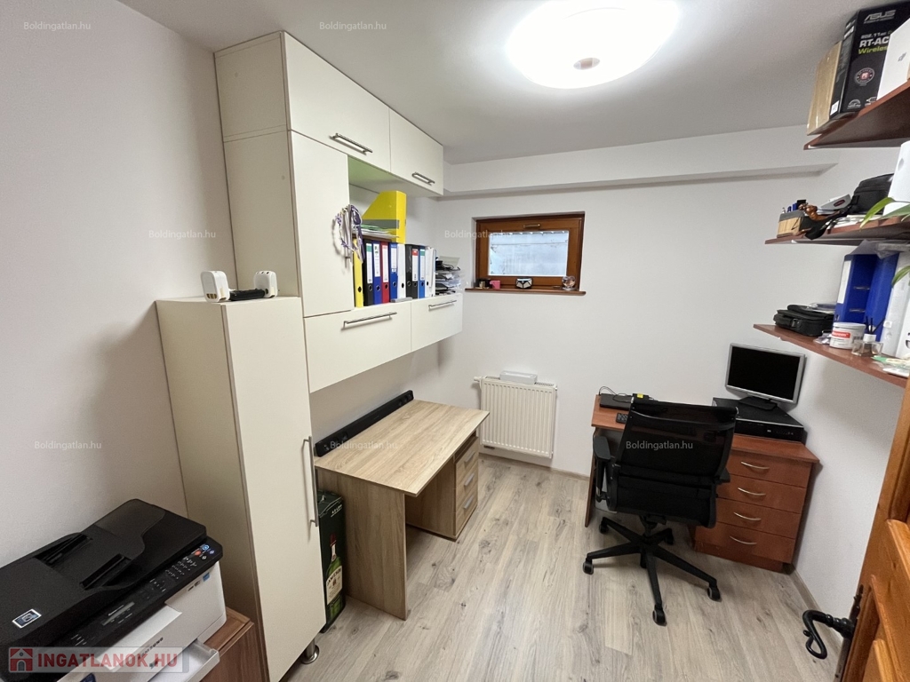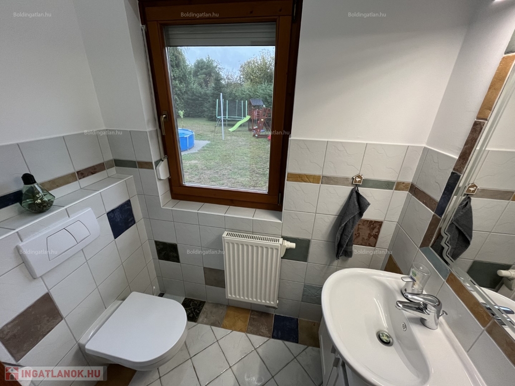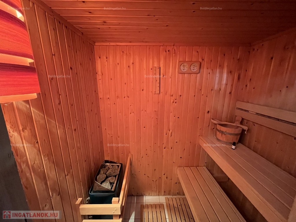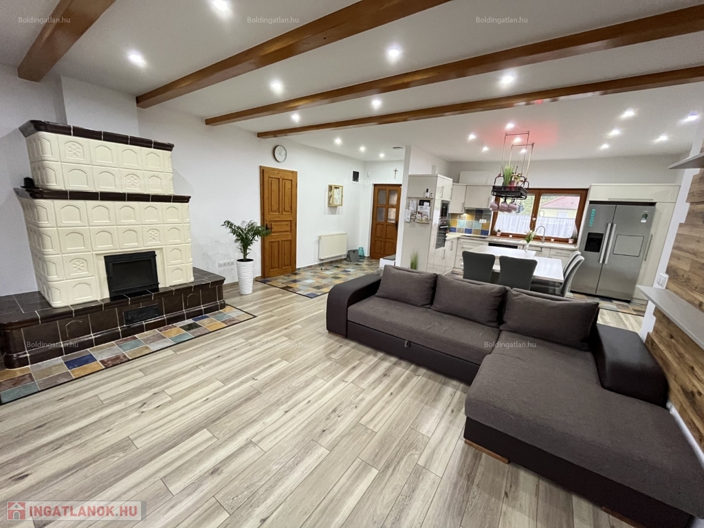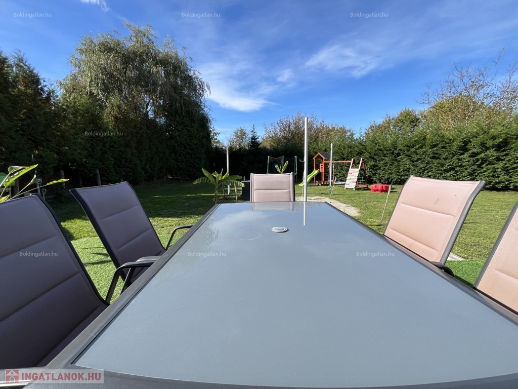 Kaposmérőben - Kaposvártól csupán 8 km távolságra - csendes utcában található, igényes kivitelben 30 cm-es Ytong téglából megépített 229 m2 összalapterületű családi ház eladó. A lakóházban előszoba, tágas légkondicionált nappali-étkezőkonyha beépített konyhabútorral és gépekkel, hangulatos meleget adó cserépkályhával találhatóak, valamint a nappaliból nyílik a téli kert, illetve konyhából és a téli kerten keresztül lehet kijutni a ház déli és nyugati oldalát ölelő teraszra. A nappali felől egy folyosón keresztül közelíthető meg a szülői hálószoba, amelyből nyílik a szülői fürdőszoba wc-vel és bidével, illetve a folyosó végén található a vendégek részére kialakított wc-kézmosó helyiség, tovább a 2 személyautó részére nagyon kényelmes 37 m2-es duplagarázs is, amelyben rengeteg polc van az időszakosan szükséges holmik tárolására. Az alsó szinten kapott helyet további 2 szoba, egy dolgozószoba, valamint egy fürdőszoba-zuhanyzó helyiség, amelyben egy új 2 személyes szaunát épített be a tulajdonos, továbbá itt található még a mosókonyha, és a kazánház is. A ház fűtése és a melegvíz ellátása Buderus melegvíztárolós kombi gázkazánnal megoldott, valamint a nappaliban 5.5 kW-os Gree típusú légkondicionáló is felszerelésre került. A lakóház tulajdonosai a házban a villanyvezetékeket kicseréltették (3x25 A, 380V állnak rendelkezésre), WiFi rendszert építettek ki, távirányítású automata alumínium redőnyöket - szúnyoghálóval -, valamint BWT típusú vízlágyítót szereltettek fel, applikációról működő kamerás riasztó rendszert építettek ki, továbbá automata kaput és garázsajtók fokozzák a kényelmet. Telek: 1.672 m2 Az ár tartalmazza a teljes berendezést is! Az ingatlan vételárába a tulajdonos kaposvári lakást beszámít! Energetikai besorolás: C.