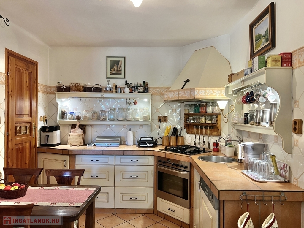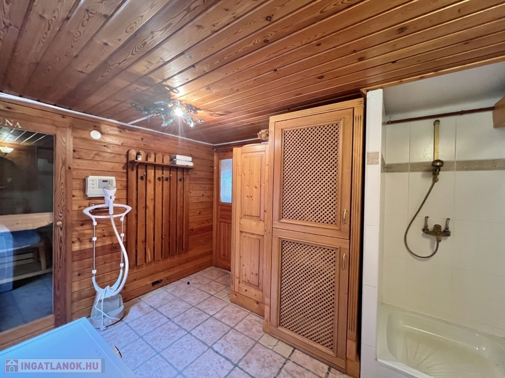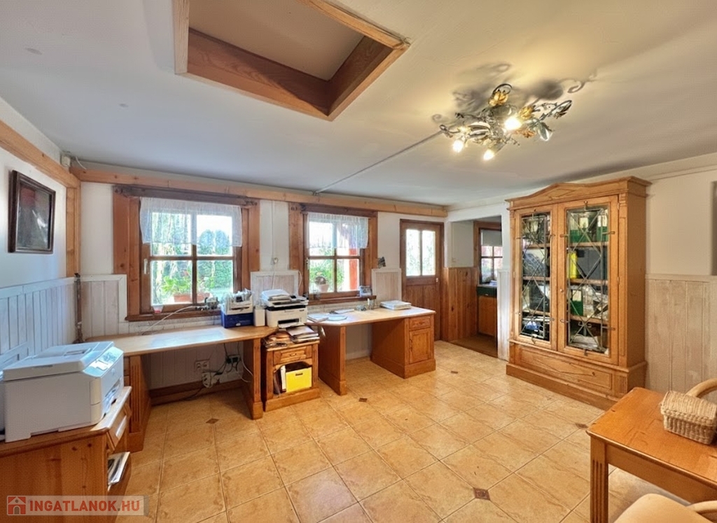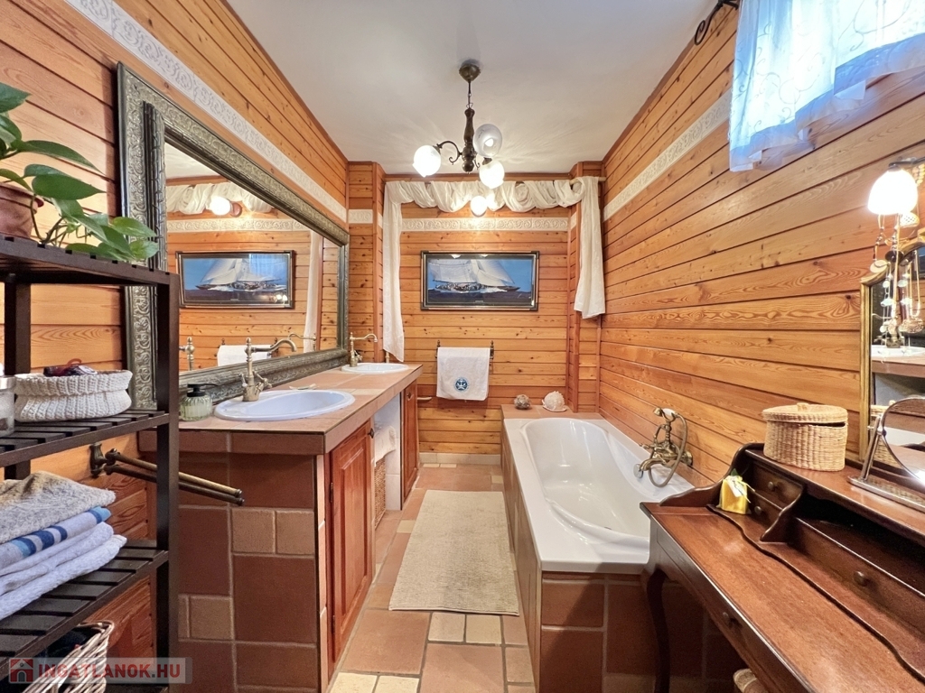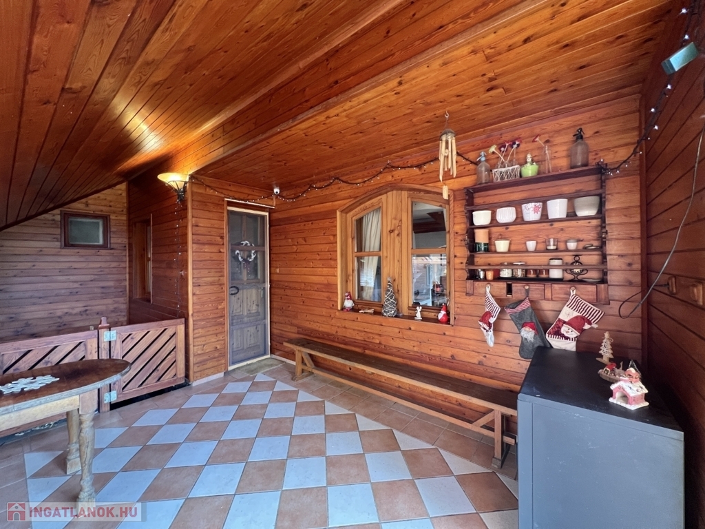 Kaposváron a Toponár városrészben - kifejezetten csendes környezetben lévő - rusztikus stílusban igényesen kialakított hangulatos 160 m2-es családi ház, különálló fedett grillterasszal, - külön lakrészként, vagy vállalkozásnak is használható - 1 szobás mellépülettel, és duplagarázzsal együtt eladó. A lakóház alsó szintjén tágas nappali, étkező, konyha-spájz, fürdőszoba-wc, előszoba, gardrób, továbbá belső udvar felé néző fedett terasz helyiségek kerültek kialakításra, valamint az épület alatt pince, kazánház helyiségek vannak. A tetőtérben 3 szoba-erkély, fürdőszoba-wc, továbbá gardrób helyiségek vannak, az épület fűtése gázközponti és vegyestüzelésű kazánnal, a melegvíz ellátása villanybojlerrel megoldott. A lakóház mögött az udvaron különálló - jelenleg irodának kialakított - melléképület található, amelyben 1 szoba, jelenleg tároló helyiség, wc, valamint szauna-mosókonyha-zuhanyzó vannak, a fűtése kályhával, gázközponti kazánnal -, valamint további igény esetén vegyestüzelésű kazánnal megoldott. Az udvarban két személyautónak alkalmas garázs, tároló-kazánház helyiségek kerültek kialakításra, illetve további gépkocsi, vagy egyéb dolgok tárolására egy 60 m2-es fedett szín is van. Telek: 2.275 m2