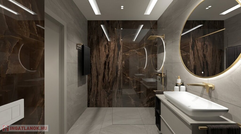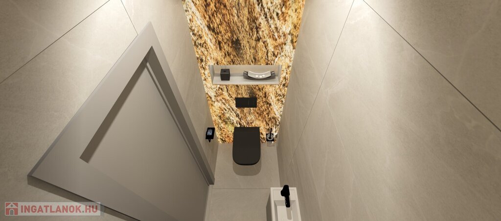 Kaposváron a Kisgát városrészben, a Reményik Sándor utcában, modern környezetben lévő, új építésű, exkluzív - magas minőségben kivitelezett, korszerű építőanyagokból épülő 4-lakásos Villaparkban - 125,16 m2-es kétszintes családi ház eladó. A lakóház földszintjén (76,96 m2) előszoba, nagy üvegportállal rendelkező tágas nappali - étkező, konyha, 1 szoba, gardrób, fürdőszoba-wc, további wc, gépészeti - tároló helyiségek kerültek kialakításra, továbbá tartozik hozzá egy 20,7 m2-es fedett, belső udvar felé néző 41,47 m2-es terasz is - süllyesztett jakuzzival. Az épület felső szintjén (48,2 m2) előszoba, 2 szoba, fürdőszoba-wc és háztartási helyiségek, illetve 20,77 m2-es nyitott terasz vannak. A korszerű, modern energetikájú - alacsony rezsivel rendelkező - épület villany ellátása H tarifával megoldott, a fűtése LG típusú hőszivattyúval kerül kivitelezésre, továbbá fan-coil rendszer biztosítja a helyiségek fűtését és hűtését. Távirányítással működő zsaluziák lesznek felszerelve, illetve prémium minőségű szaniterek és szerelvények, illetve csapok - Wellis, illetve HansGrohe - kerülnek beépítésre. Az igényesen kialakított udvaron tartozik a lakáshoz 1 db fedett gépkocsibeálló és további 1 db kocsibeálló. Az épület teljes kivitelezését - és várható 2026. III. negyedévben történő átadását - követően a - komoly referenciákkal rendelkező - beruházó végzi majd a Villapark közös költséggel járó üzemeltetését is. A lakáshoz tartozó önálló udvar mérete: 75,55 m2