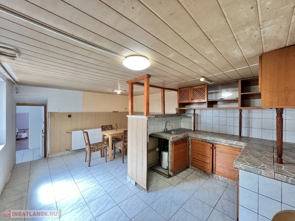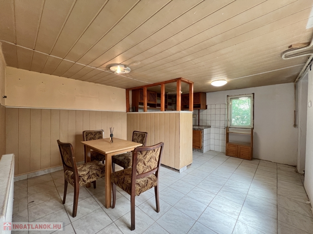 Kaposváron a Kecelhegyen a Kőrösi Csoma S. utcában, - akár azonnal birtokba vehető - 80 m2 + 27 m2-es 1970-ben épült családi ház a képeken látható műszaki állapotban eladó. A lakóház 27 m2-es szuterénjében előtér, 1 fürdőszoba-kézmosó, továbbá 1 szoba helyiségek kerültek kialakításra. A 80 m2-es lakószinten előszoba, 2 szoba, közlekedő, konyha-étkező, spájz-tároló, fürdőszoba-wc helyiségek kerültek kialakításra. Az épült fűtése és a melegvíz ellátása 2 éves Vaillant kombi gázkazánnal megoldott, valamint cserépkályha is van. Az udvaron 18 m2-es garázs, továbbá egy kisebb 8 m2-es tároló helyiség és felújítandó állapotú gazdasági épület van. Telek: 1.122 m2