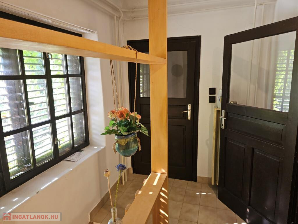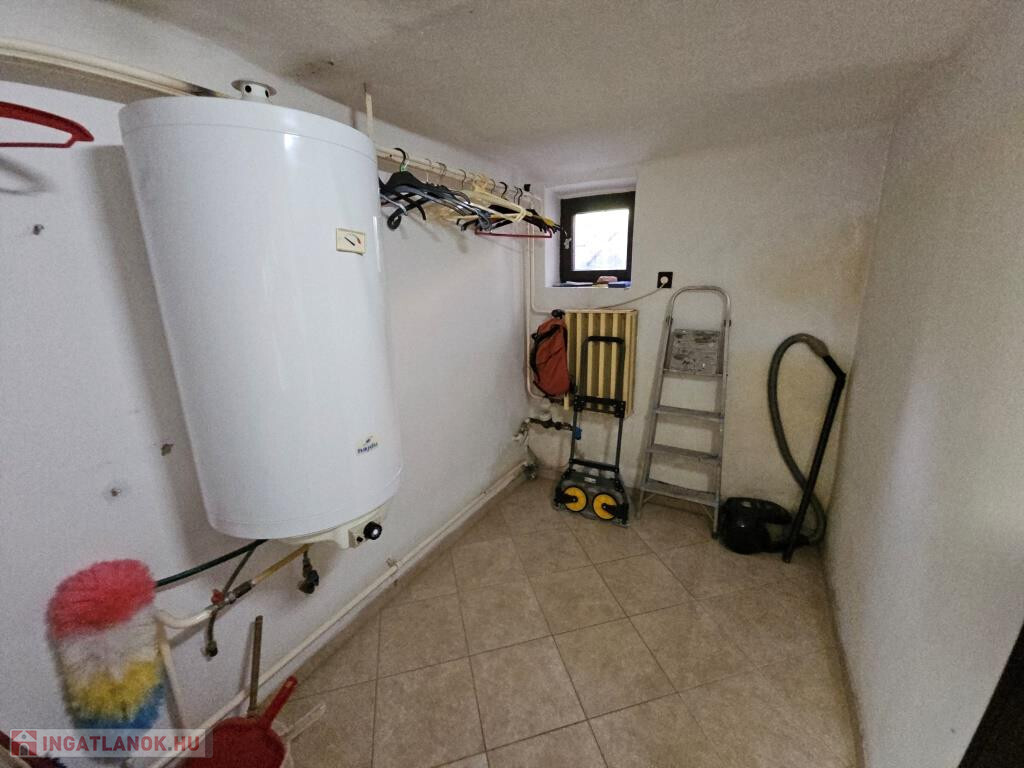 Kaposváron, a Pázmány Péter utcában kínáljuk megvételre ezt a nagyon jó helyen álló családi házat. Belső kétszintes, lakóterülete 75 m2, nem túl nagy, nem túl kicsi. Az utcáról - a végén a kert felé nyitott - folyosón keresztül jutunk a bejárati ajtóhoz. Az előtérbe lépünk, innen nyílik szemben a nyugati fekvésű, barátságos, napfényes nappali-étkező, ami egylégterű a konyhával. Praktikusan itt van a kamra is. Az előtér oldalsó nyúlványa egy tároló rész, ide csatlakozik a kádas fürdő a WC-vel. Az emeletre kényelmes és szép falépcső vezet, fent a közlekedőből nyílóan két külön bejáratú, tágas, keleti tájolású szoba lett kialakítva. A fűtés a fürdőben konvektorral megoldott, a ház többi részén cirkós, radiátoros, és az egyik szobában légkondi berendezés is van. A külső nyílászárók hőszigeteltek. A ház mögött romantikus kert bújik meg kellemes árnyad adó fákkal, bokrokkal és egy kis füves résszel, ahová jó kijönni, megpihenni. Tartozik mindehhez egy 16 m2-es utcai bejáratos garázs távirányítós kapuval. A telek 317 m2-es. Összességében nagyon jó hangulatú és barátságos mind a ház, mind a kert. Az utca nyugodt, a szomszédos házak szinte mindegyike fel lett újítva, így a környék rendezett, vonzó.