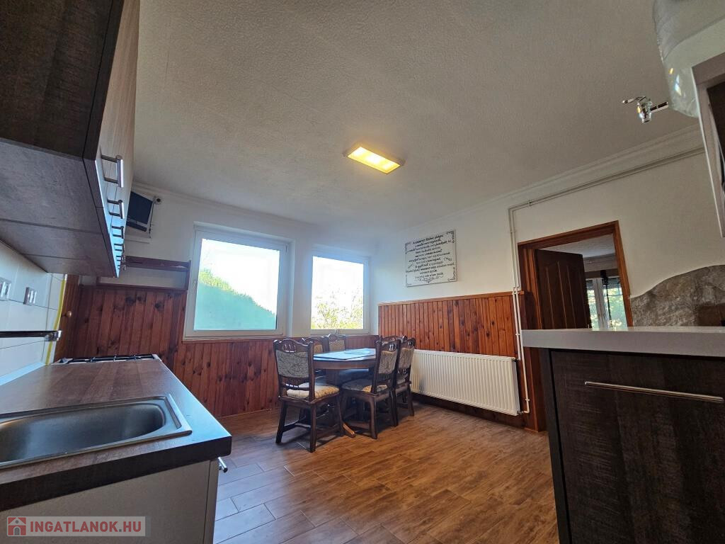 Kaposváron, a Keletivánfa utca felső részén kínáljuk megvételre ezt a szépen felújított családi házat. Alapterülete 92 m2, plusz a 24 m2-es fedett terasz, ami szerves része mind a lakótérnek, mind a kertnek, így összesen 116 m2. Három tágas szoba lett kialakítva, valamint a szintén nagyobb méretű étkezős konyha, ezeken kívül pedig a kamra a gépészettel, a fürdő, a WC, és az előtér. A ház világos, barátságos, kényelmes, otthonos. Külső nyílászárói hőszigeteltek, fűtése kondenzációs kombi kazánnal megoldott, és van egy hasznos, hangulatos cserépkályha is. A villanyt bővítették, a vezetékeket cserélték. A régi tető 2022-ben teljesen le lett bontva, új szaruzat és héjazat kerül felépítésre. Nem közvetlenül az utcafronton épült, hanem kicsit beljebb, kicsit feljebb, ami miatt igazán intim elhelyezkedésű. Vannak melléképületek kb. 30 m2 dupla garázzsal, tárolókkal, és egy kb. 20 m2-es klasszikus, téglázott, boltíves pincével. A telek 6500 m2-es, változatos domborzatú, helyenként teraszos kialakítású, szépen gondozott, parkosított. Felső részéről csodálatos panoráma nyílik a völgyre. Itt nem csupán lakni, hanem élni lehet!