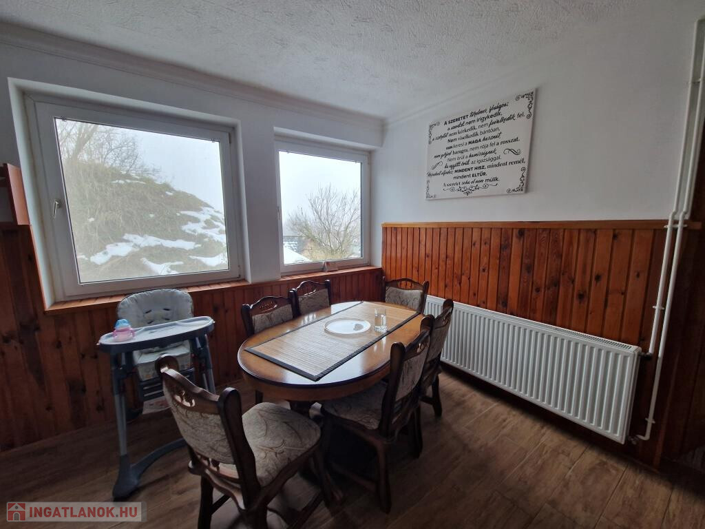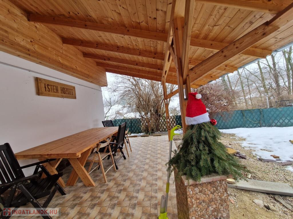 Kaposváron, a Keletivánfa utca felső részén kínáljuk megvételre ezt a szépen felújított családi házat. Alapterülete 92 m2, plusz a 24 m2-es fedett terasz, ami szerves része mind a lakótérnek, mind a kertnek, így összesen 116 m2. Három tágas szoba lett kialakítva, valamint a szintén nagyobb méretű étkezős konyha, ezeken kívül pedig a kamra a gépészettel, a fürdő, a WC, és az előtér. A ház világos, barátságos, kényelmes, otthonos. Külső nyílászárói hőszigeteltek, fűtése cirkós új kazánnal, és van egy hasznos, hangulatos cserépkályha is. A villanyt bővítették, a vezetékeket cserélték. Nem közvetlenül az utcafronton épült, hanem kicsit beljebb, kicsit feljebb, ami miatt igazán intim elhelyezkedésű. Vannak melléképületek kb. 30 m2 dupla garázzsal, tárolókkal, és egy kb. 20 m2-es klasszikus, téglázott, boltíves pincével. A telek 6500 m2-es, változatos domborzatú, helyenként teraszos kialakítású, szépen gondozott, parkosított. Felső részéről csodálatos panoráma nyílik a völgyre. Itt nem csupán lakni, hanem élni lehet!