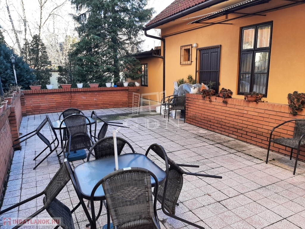 Az ingatlan udvari részén egy 23 m2 nagyságú terasz található, mely lehetőséget biztosít szabadtéri rendezvények lebonyolítására. Az udvar többi része parkosított.