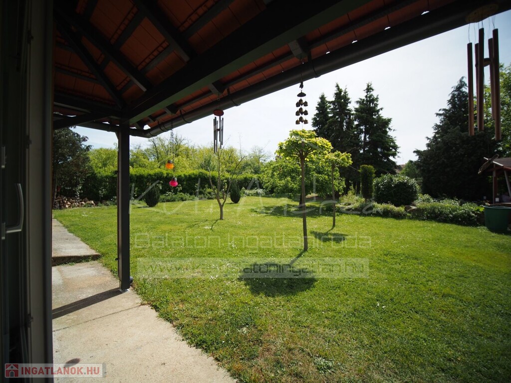 • A kert teljesen parkosított, gondozott terület. Itt található egy kerti fedett kiülő, valamint egy ásott kút gondoskodik a kert öntözésének vizellátásáról. Az udvar azon része, amin megközelítjük a házat le van térkövezve masszív 8 cm-es térkővel és egy autónak külön kialakítottak egy fix parkolási helyet villany töltési lehetőséggel.