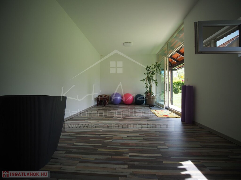 • A kertben levő gazdasági épület fele egy tornateremnek van kialakítva, itt is nagy méretű modern nyílászáró van beépítve és ide klímát szereltek fel a helység hűtésére és fűtésére. A gazdasági épület másik fele raktárként funkcionál. Mindez kb 32 m2.