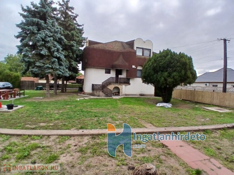 Eladó Makovecz-stílusú, téglaépítésű, dupla komfortos családi ház Karácsondon – két ház egy telken, medencével!