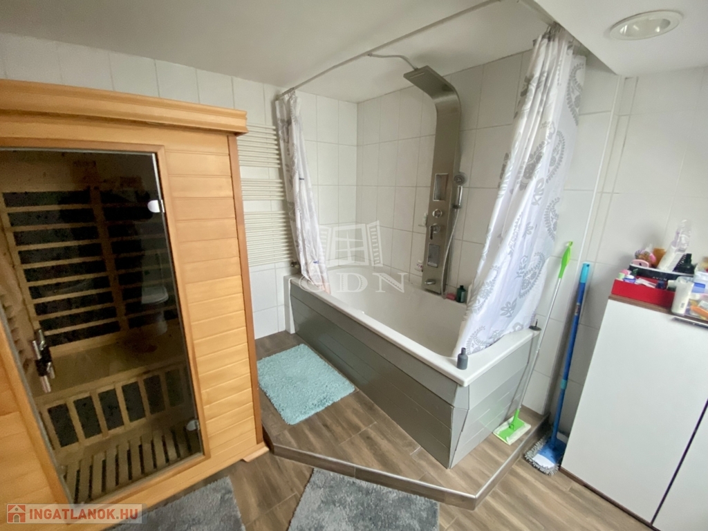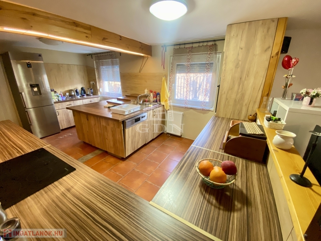 2002-ben épült, 136 nm-es, tetőtér beépítéses, amerikai konyhás nappali + 3 hálószobás, két fürdőszobás, cirkó fűtéses, klímás, műanyag thermo ablakos, külsőleg szigetelt, jó állapotú.
