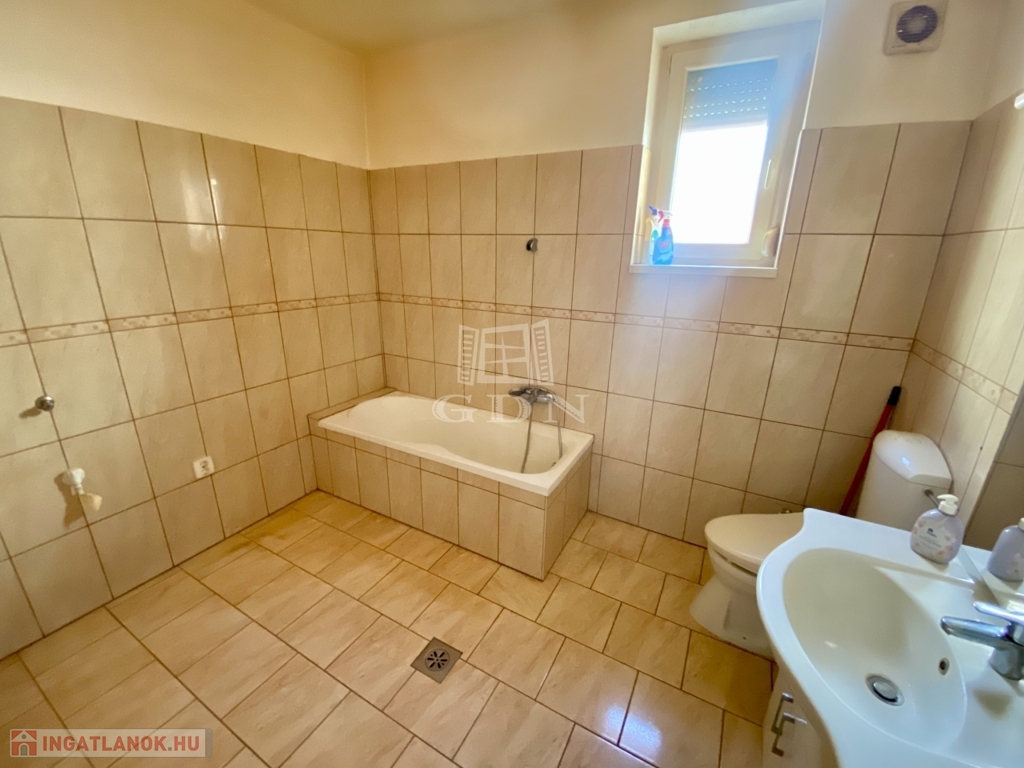 '60-as években épült, 99 nm-es, 2+1 félszobás, cirkó fűtéses, műanyag thermo ablakos, közepes állapotú.