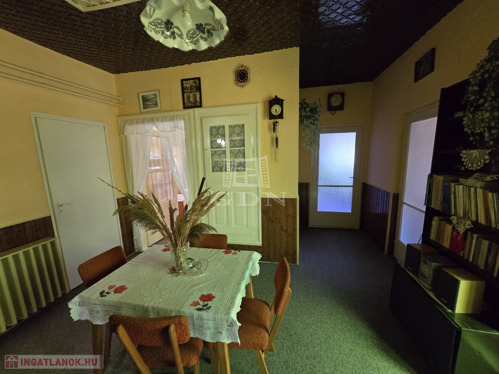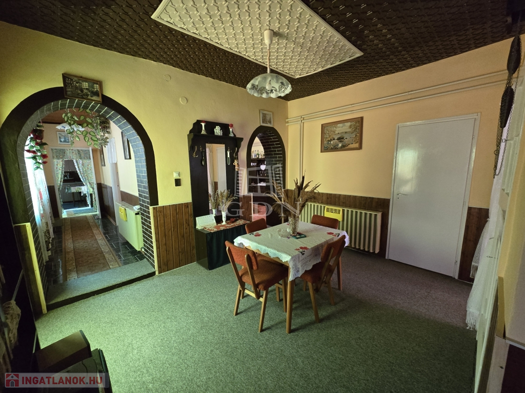 Az ingatlan vegyes falazatú, jó állapotú, cserépfedésű tetőszerkezete száraz, stabil faszerkezetű. A belső elrendezés kiváló: három különálló szoba, egy nagy nappali, előszoba, fürdőszoba, külön WC, folyosó, spájz, padlásfeljáró, valamint egy kazánház került kialakításra, melyből pince is nyílik, biztosítva a tárolási lehetőségeket.