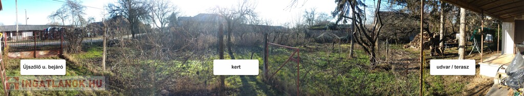 Teljes telekterület (lakóház + udvar + kert): 1612 m²