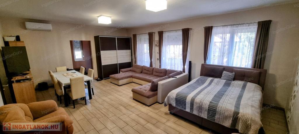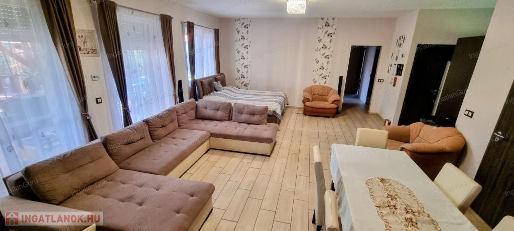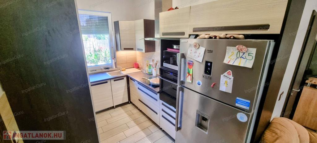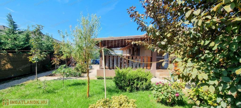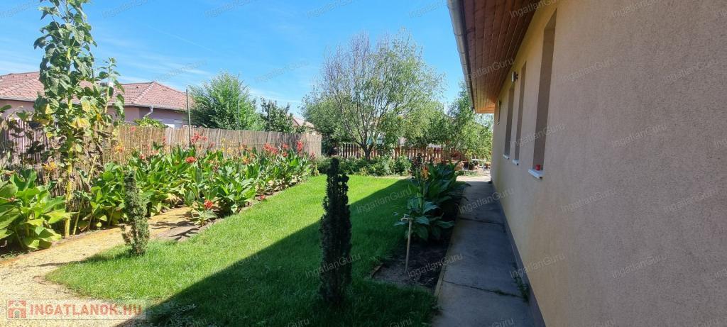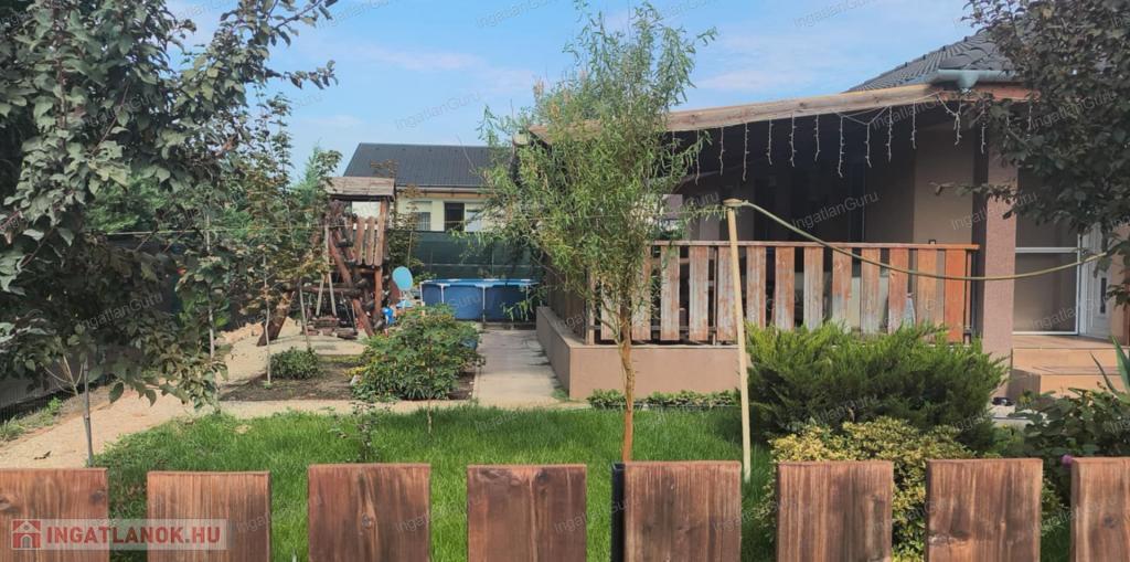 Bács-Kiskun Vármegye Kecskemét Felsőszéktó ELADÓ Zártkerti művelés alól kivett, 750nm-es terület és a rajta levő 2019-ban megépült nettó:154 nm-es, amerikai konyhás nappali + 3 szobás lakóház, 19nm-es garázzsal, 47 nm-es fedett terasszal. Művelési ág alól kivont, nem kell kifüggeszteni! Az ingatlan Petőfiváros Zápor utcától kb: 200 m mart aszfaltos kezelt jól járható földúton közelíthető meg, az Oázis lakóparkban található. Készen várja új tulajdonosát, parkosított rendezett udvar,fúrtkút rendelkezésre áll. Ide csak költözni kell. Bekerített 750 nm-es parkosított telken medence játszótér kerti tó található,csendes, nyugodt szinte forgalommentes környezet, jó szomszédsággal, buszmegállók bevásárlási lehetőség a közelben. Az M5 autópálya csatlakozás 2percre autóval. Az amerikai konyha, kamra nappali étkezős + 3 szobás, fürdő wc egyben, de az előszobából nyílik 1vendég wc, illetve a garázs a lakásból megközelíthető. A ház a 2019-ben az akkori ÉPHAT szabályai szerint megépült, vasbeton sávalap, 30-as téglafalazat, tégla válaszfalak, kombi gázkazán cirkó fűtés, klíma, műanyag 3 rétegű hő és hangszigetelt nyílászárók, 15 cm nikecel szigetelés, nemes vakolat, ácsolt tetőszerkezet betoncserép. Főbb jellemzők: - Jó közlekedés, csendes jó környék - Szinte új ház - Gyorsan birtokba vehető Köszönöm, hogy elolvasta a hirdetésem, ha felkeltettem az érdeklődését keressen bizalommal.