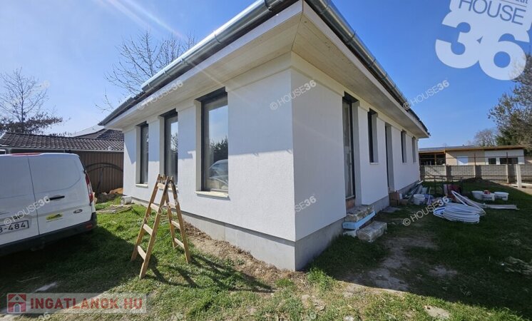 Kecskeméten, a Hunyadiváros újépítésű részén, aszfaltozott utcában, hátsó, nyeles, osztott telken (használati megosztással), 519 m2-es, teljesen körbekerített telken, 95,69 m2-es, nappali + 3 szobás családi ház, 2026 nyári átadással eladó! Jelenleg a ház már tető alatt áll, gépészeti-és burkolási munkák folynak.