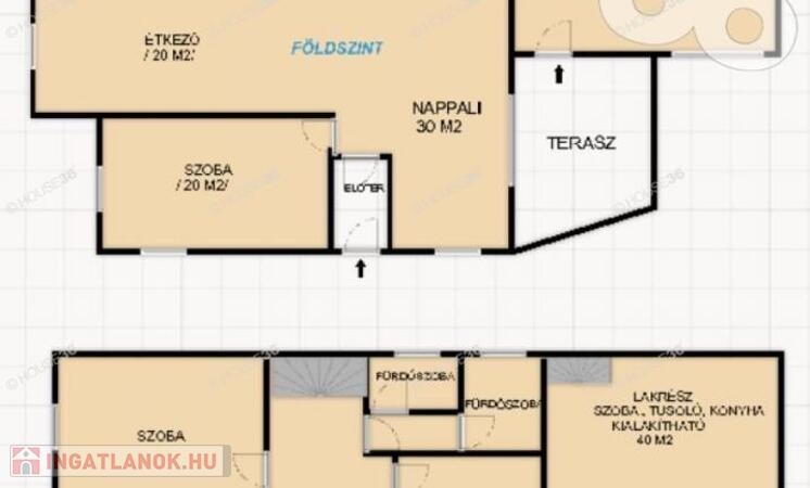 161 m2-es földszint, netto 61 m2 emelet